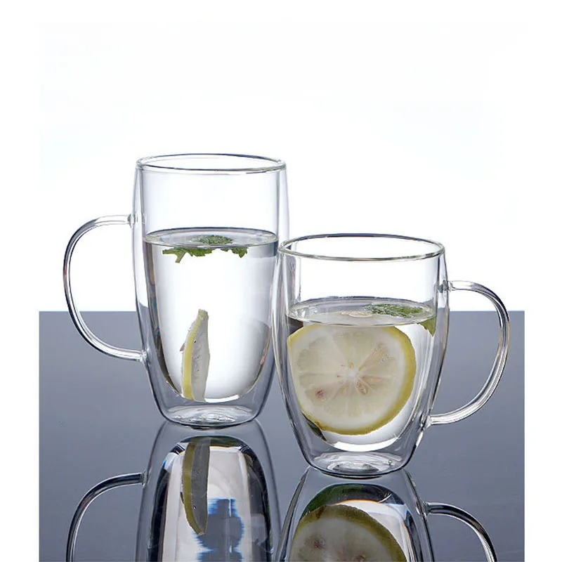 2 шт термостойкие Двойные стенки Стеклянная прозрачная чайная чашка...