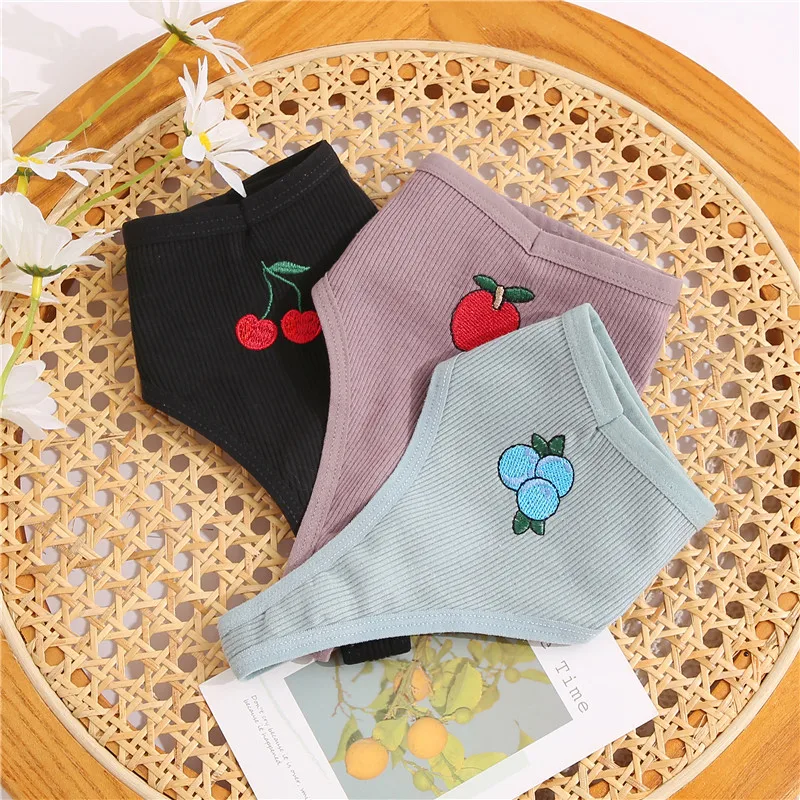 FINETOO женские трусики с вышивкой фруктов M-2XL, хлопковое нижнее белье, сексуальные трусы с v-образной талией, женские мягкие трусы, трусики для девочек, нижнее белье