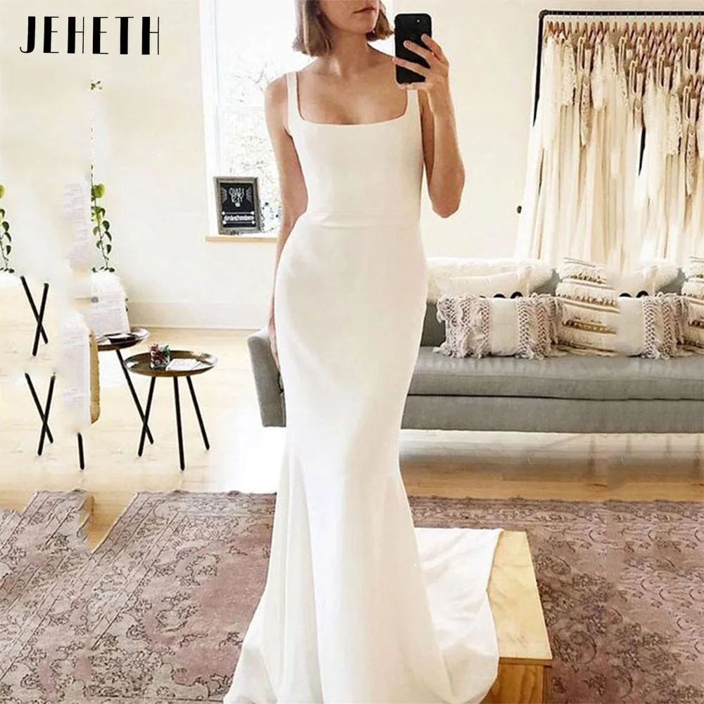 JEHETH мягкое Пятнистое свадебное платье Русалка с квадратным вырезом и открытой спиной простое свадебное платье макси платье для вечеринки