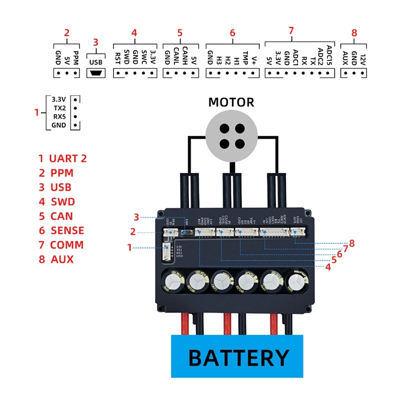 Sesc75200 75V Высокая сила тока 200A база ESC на Vesc с алюминиевым радиатором для электронной фольги доски для серфинга AGV робота