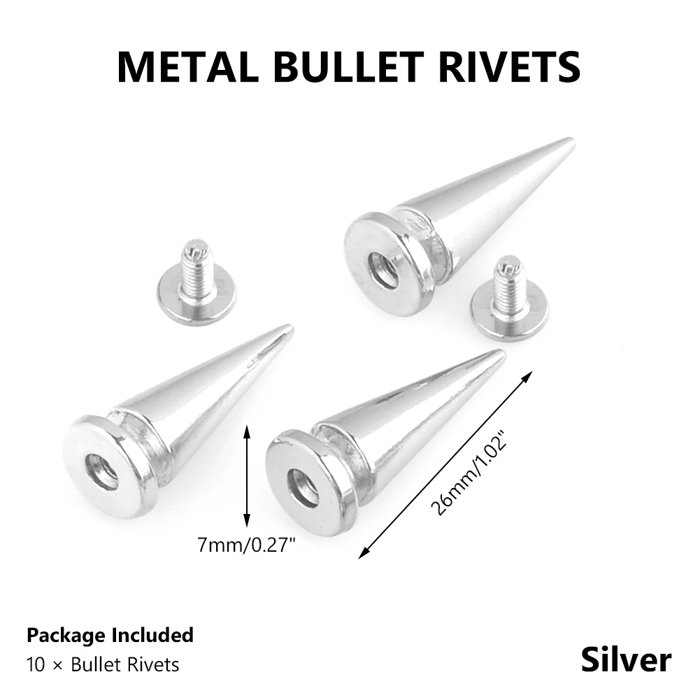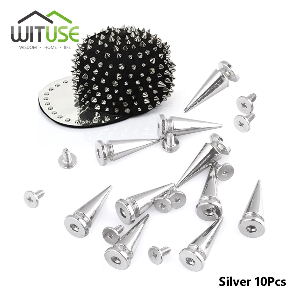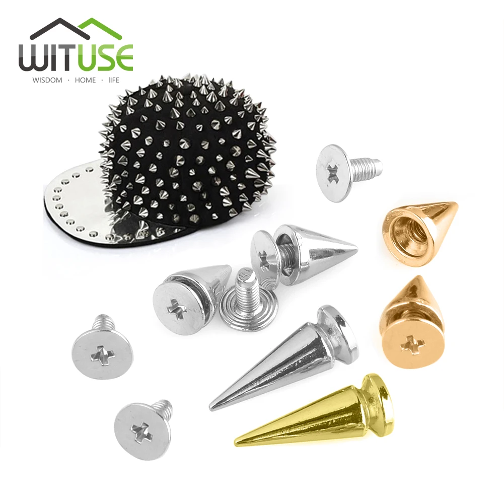 WITUSE Прохладный 10/26 мм декоративными заклепками-шипами; Кожаные ботинки для женщин, пуля золотого, серебряного цвета, с металлическими заклепками и шипами; Цвет для одежды украшения 10 шт./пакет