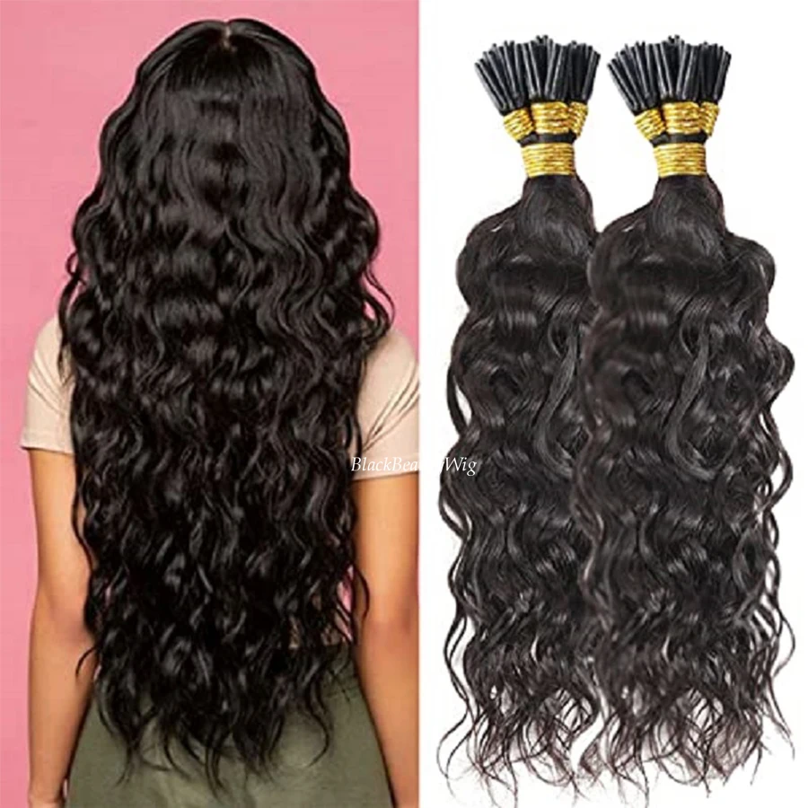 Волнистые накладные человеческие волосы с I-образным кончиком, предварительно скрепленные бразильские волосы без повреждений, I-образные волосы, свободные волнистые микробусины, 100 г, 100 шт.