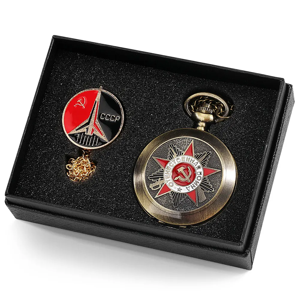 4 шт.компл. роскошные золотые советские серп-молот СССР кварцевые карманные часы СССР с эмблемой России коммунизма брошь подарок для мужчин женщин мужчин