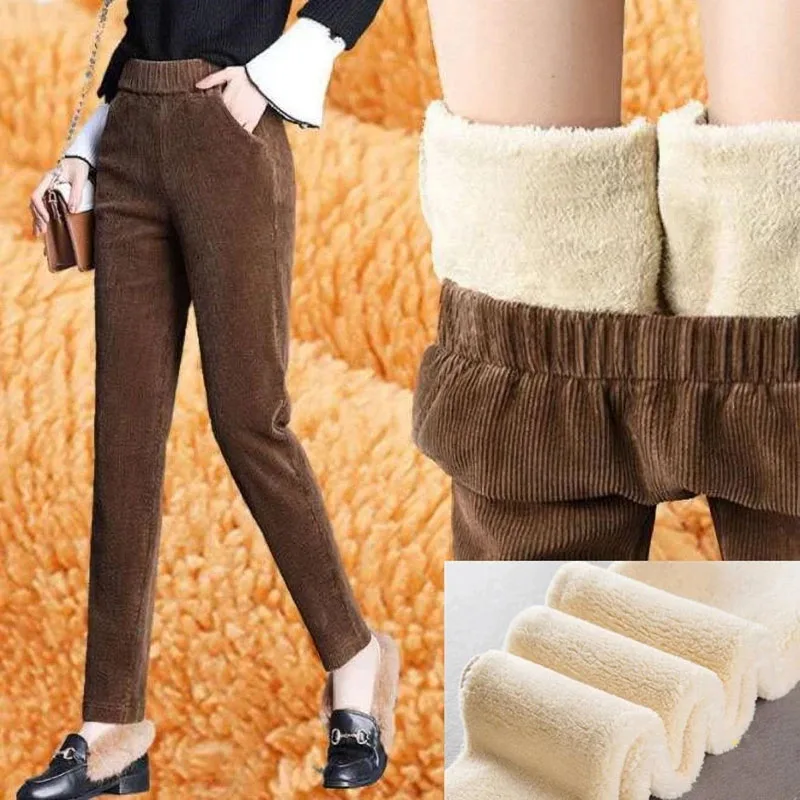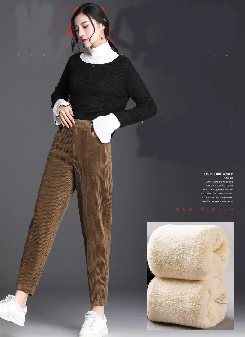 Плотное плюшевое вельветовое пальто, повседневные брюки, женские теплые осенне-зимние брюки, повседневные шаровары с высокой талией, повседневные брюки
