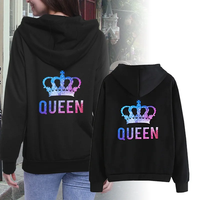 Толстовка с капюшоном для мужчин и женщин, свитшот с принтом Королева Король, одежда для влюбленных, на Рождество, Новый Год, худи для мужчин и женщин