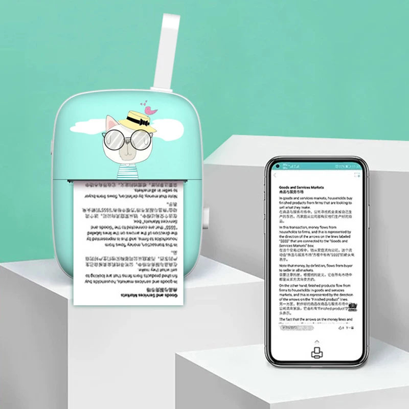 Миниатюрный термопринтер, портативный беспроводной принтер для печати этикеток, чеков, чеков, бумаг, Bluetooth-совместимый Термопринтер для дома и офиса