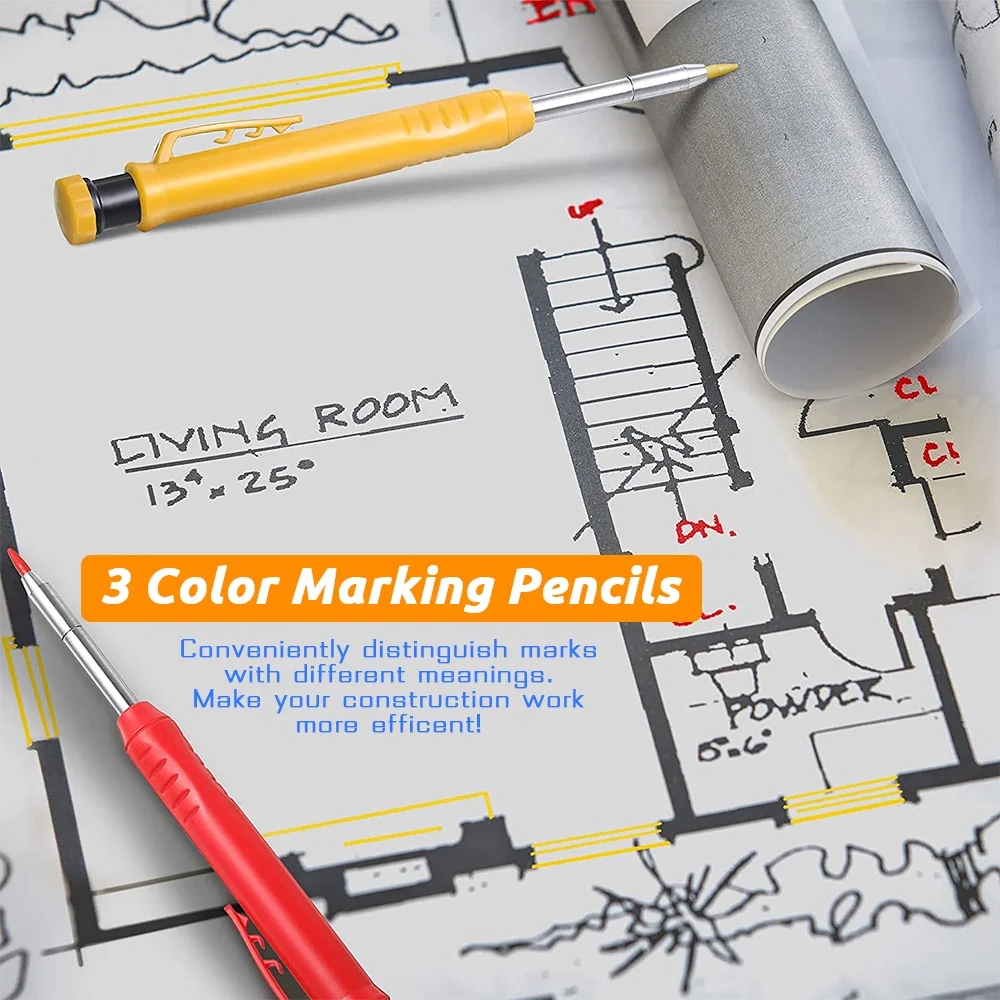 3. 【Механический карандаш: Карандаш Плотника не соскальзывает пальцы с карандаша и повторные следы уменьшат боль; Дизайн ручки можно легко повесить на сумку, легко использовать и не легко потерять, повышение эффективности, подходит для строительства и каменщиков.