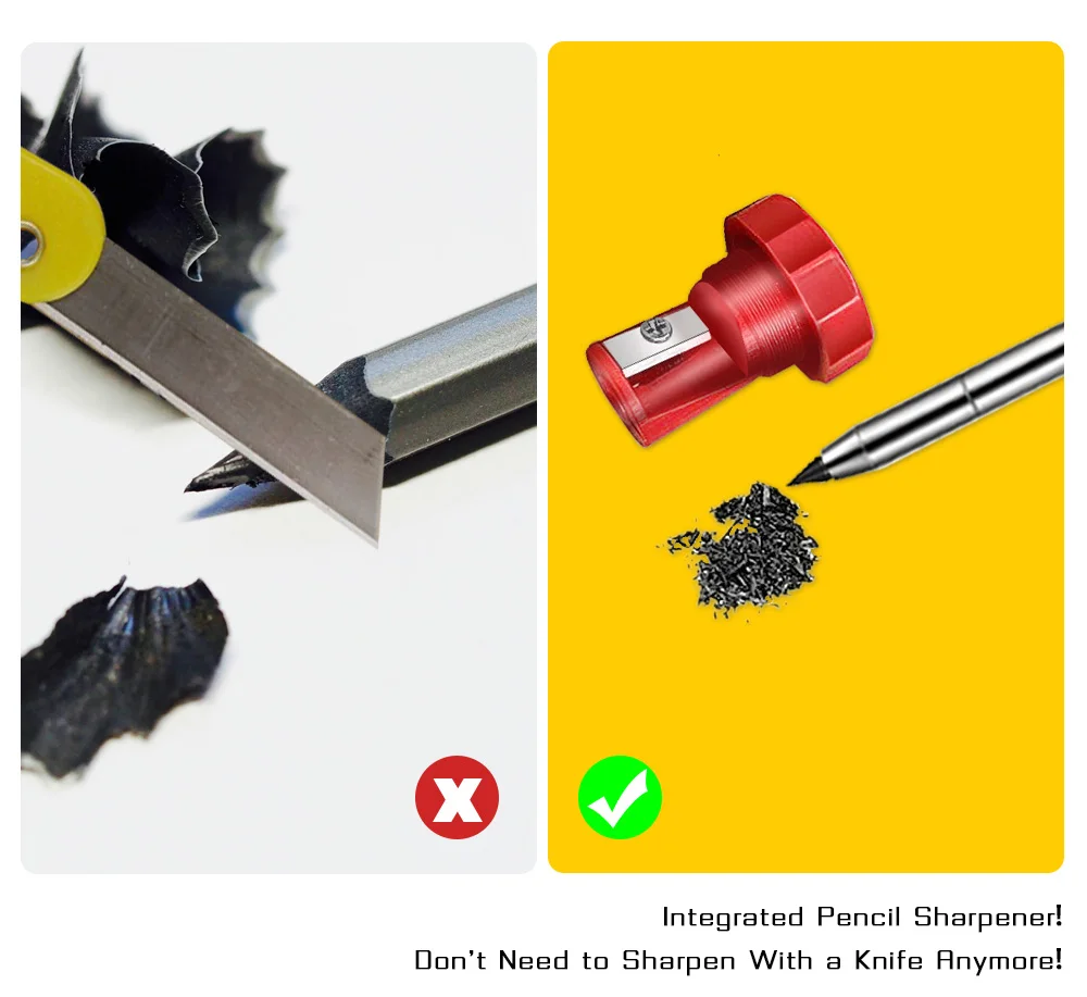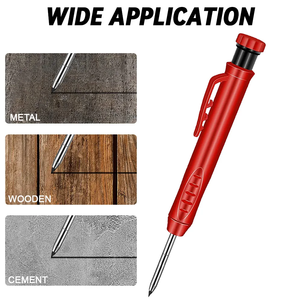 1.【Производитель глубоких отверстий 】: Время проектирования карандаша плотника с глубоким отверстием составляет 45 мм и наконечник носа, достигая труднодоступных мест, в то время как другие знаки плотника не могут. Подходит для сквозных отверстий или других узких зон.