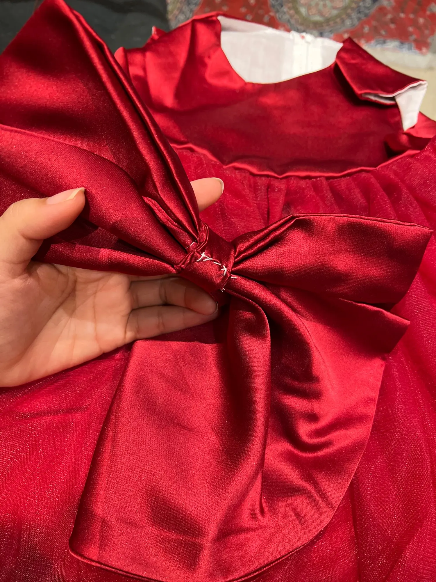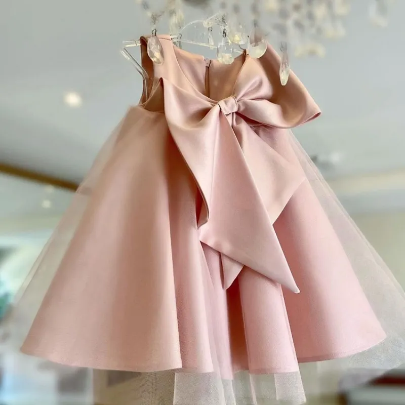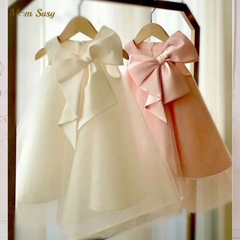 Шелковое Тюлевое платье принцессы для маленьких девочек, винтажное платье без рукавов с большим бантом для младенцев и девочек, вечерние платья на день рождения
