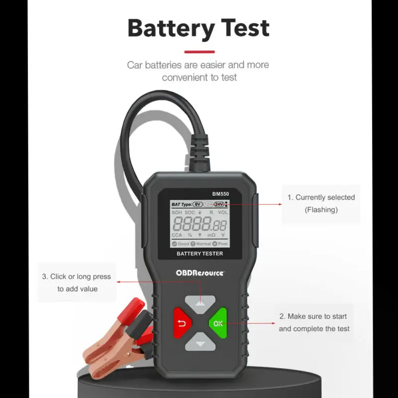 Автомобильный тестер аккумуляторов BM550, 6 в, 12 В, 24 В, 100-2000 CCA, 2 Ач-Ач, система обнаружения аккумуляторов, анализатор, диагностический инструмент PK KW208