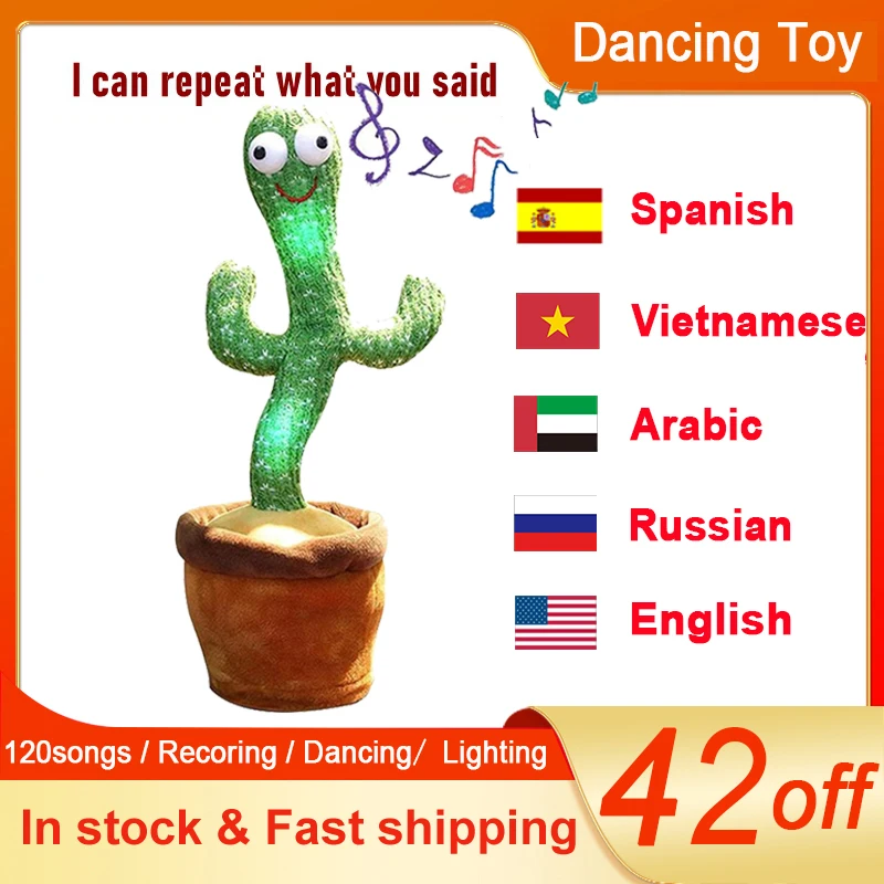 Танцующий кактус, плюшевая игрушка, говорящая, звукозапись, повторная игрушка 120, русские, испанские, вьетнамские, арабские, английские песни, обучающая игрушка для детей