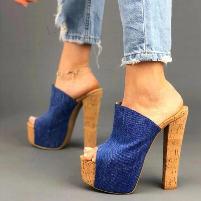 SEIIHEM/женские сабо на платформе; Джинсовые женские туфли ручной работы на не сужающемся книзу массивном каблуке с открытым носком; Scarpe Donna; Коллекция 2022 года; Женская обувь; Большие размеры 41, 42, 48, 50, 52