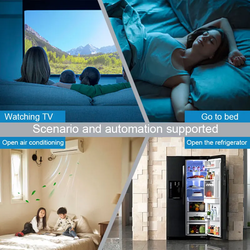 2. Поддерживается сценарий и автоматизация: подустройства шлюза действуют в качестве триггерных условий для соединения их с другими смарт-устройствами с помощью сценария и настройки автоматизации в приложении, показан как один мощный сетевой мост для связи всего дома в реальном плане для всех устройств Tuya Smart home.