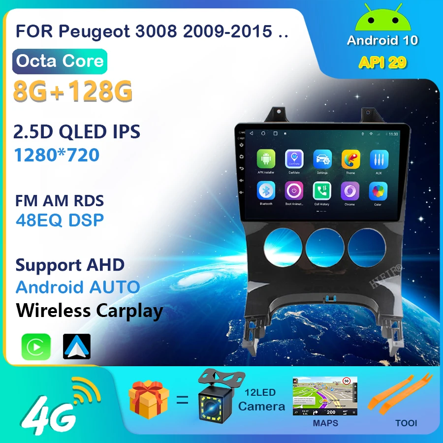 Восьмиядерный 6 + 128 ГБ Android 10 для Peugeot 3008 2009 - 2015 автомобильный Радио Мультимедийные видео плееры Android Auto CarPlay 2 din dvd