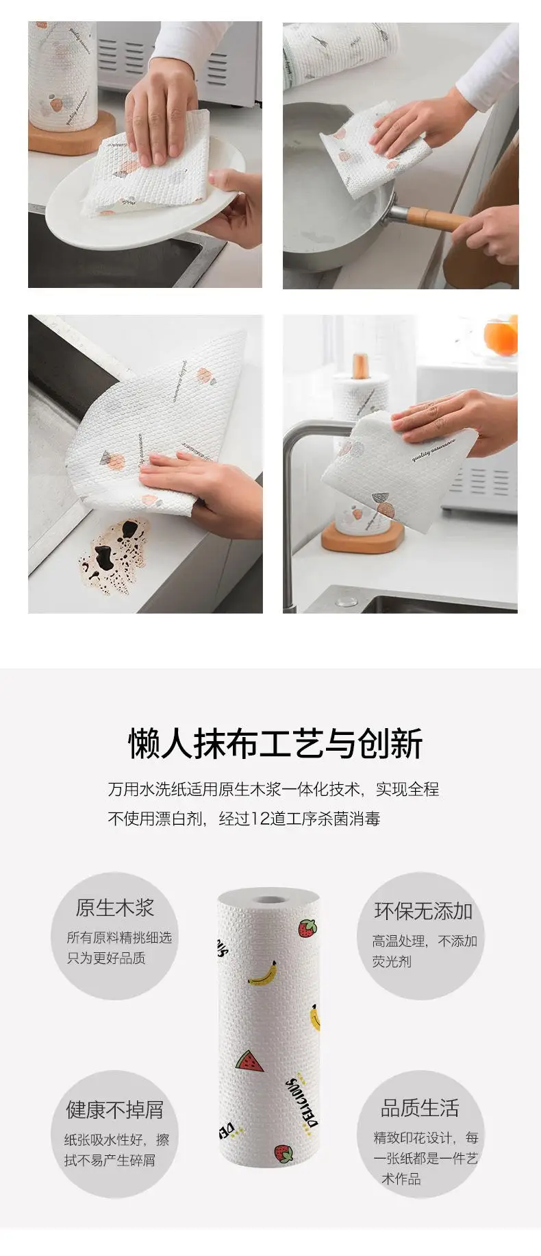Моющаяся Ткань для сухой и влажной уборки, Органическая кухонная многоразовая ленивая тряпка, рулоны для очистки масла, Нетканая ткань для использования в стиле хо