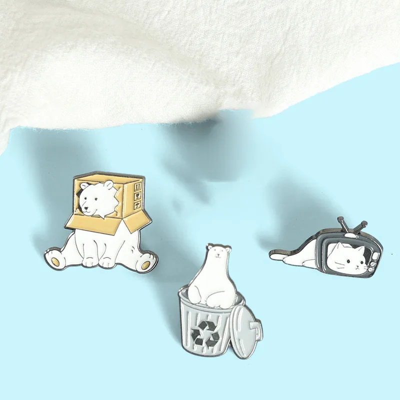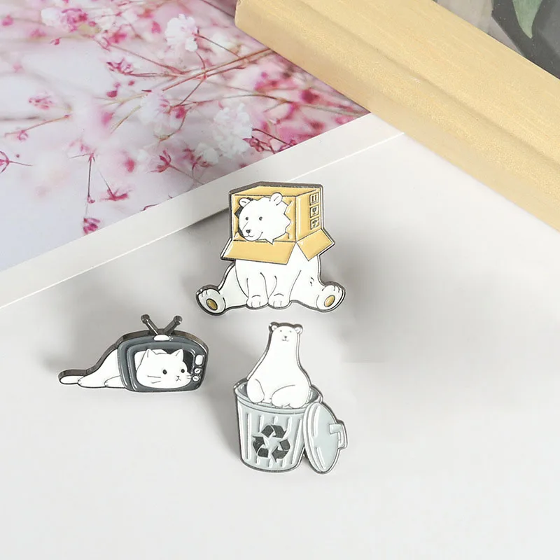 Эмалированные заколки в виде кошки, медведя, головы в ТВ-коробке, забавные животные на заказ, брошь на лацкан, значок для сумки, Мультяшные украшения, подарок для ребенка, друга