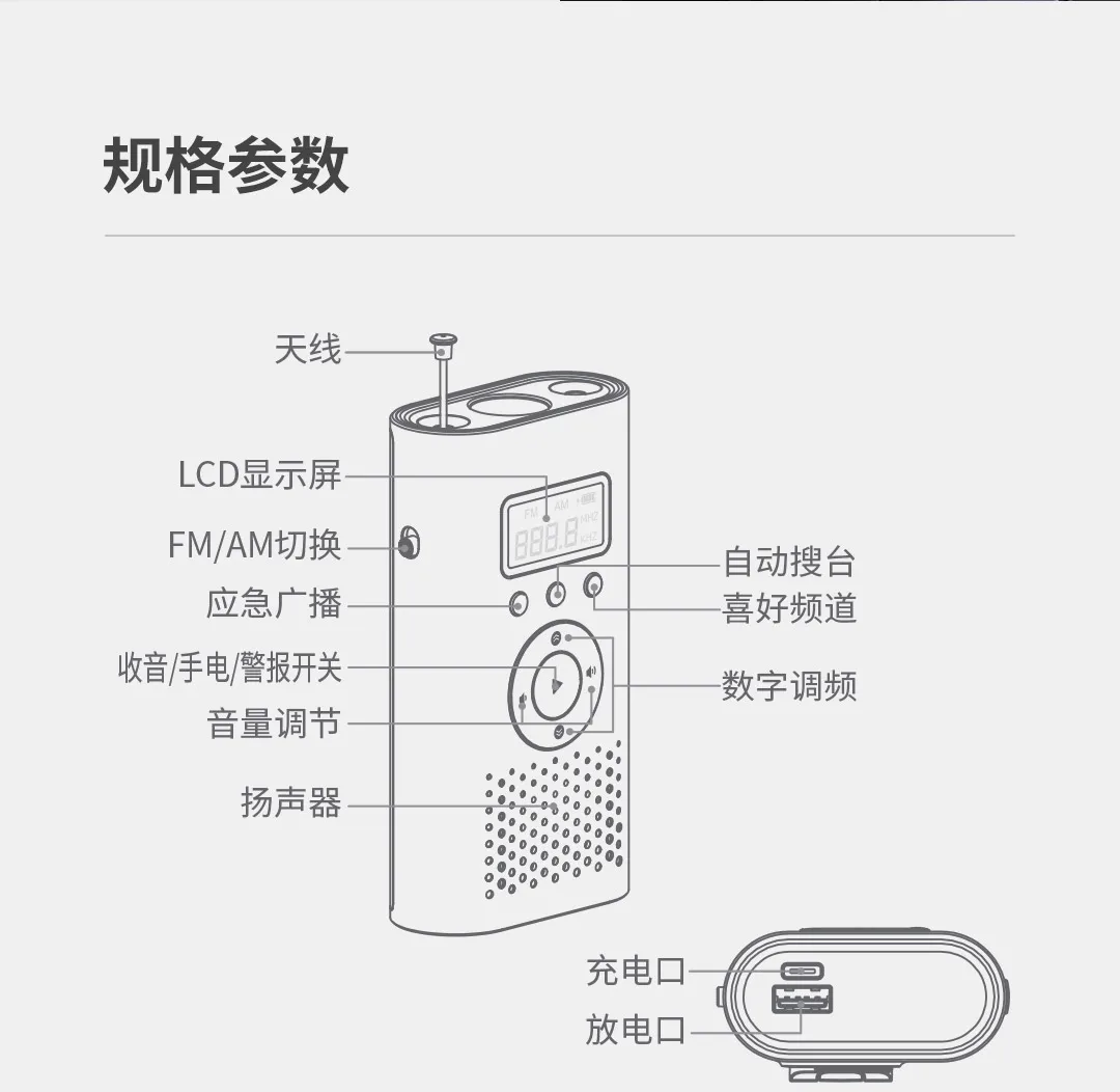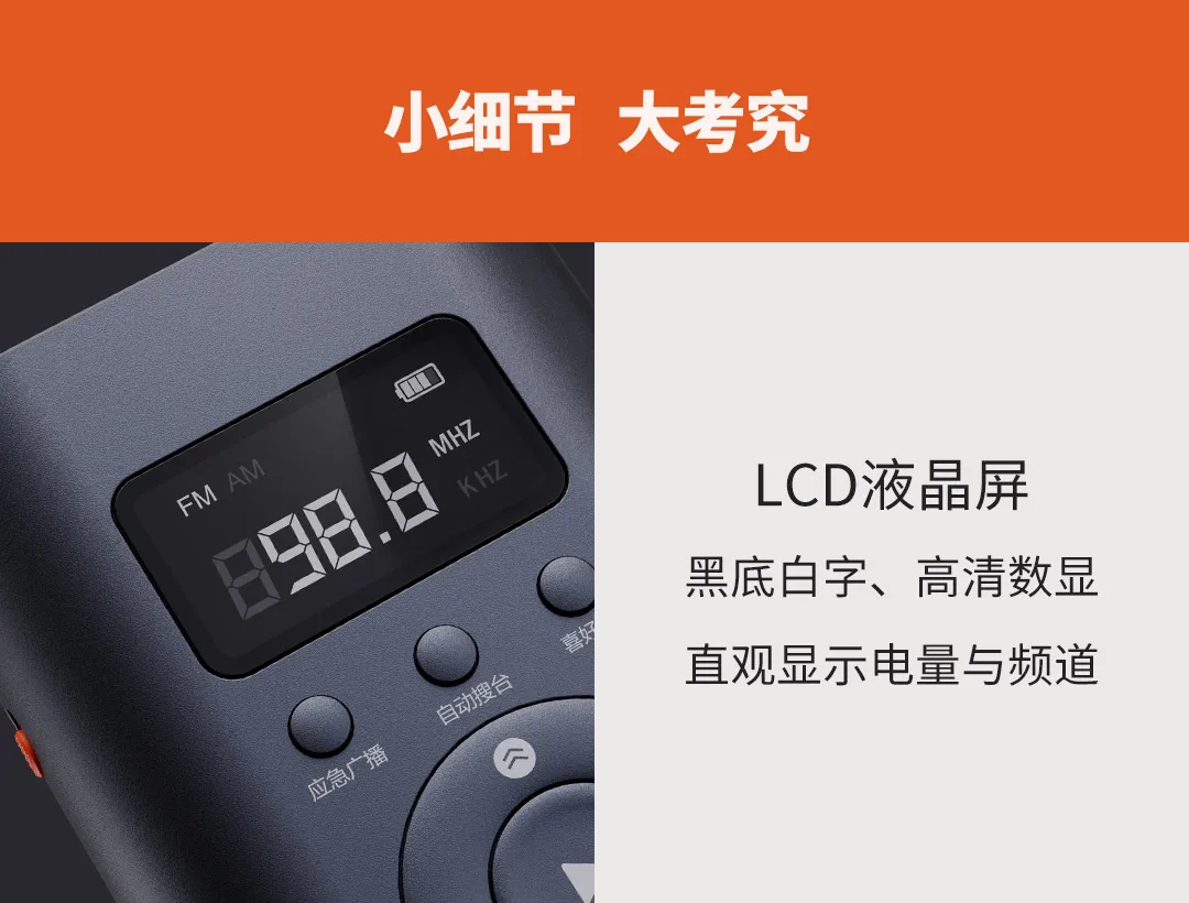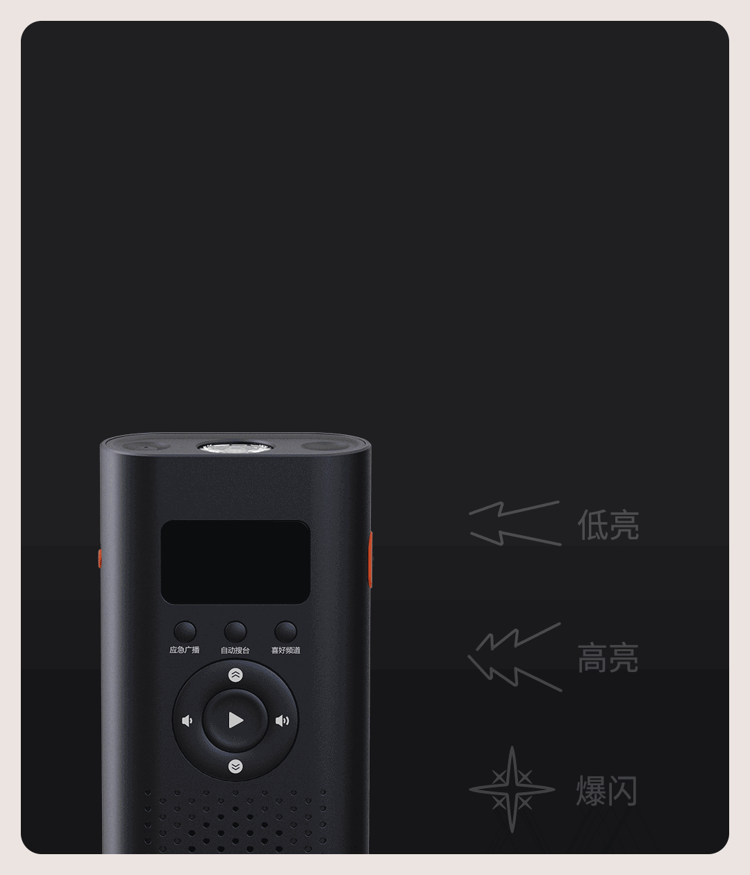 Радио: слегка нажмите на среднюю кнопку, чтобы включить радио, и ЖК-экран загорится. При включении ЖК-экрана снова нажмите среднюю кнопку, чтобы выключить радио. (Если фонарик и радио включены одновременно, сначала нужно выключить фонарик, затем нажмите среднюю кнопку, чтобы выключить радио)