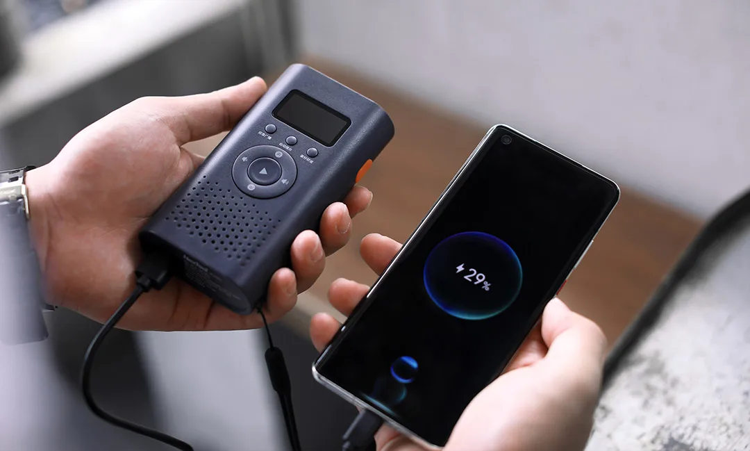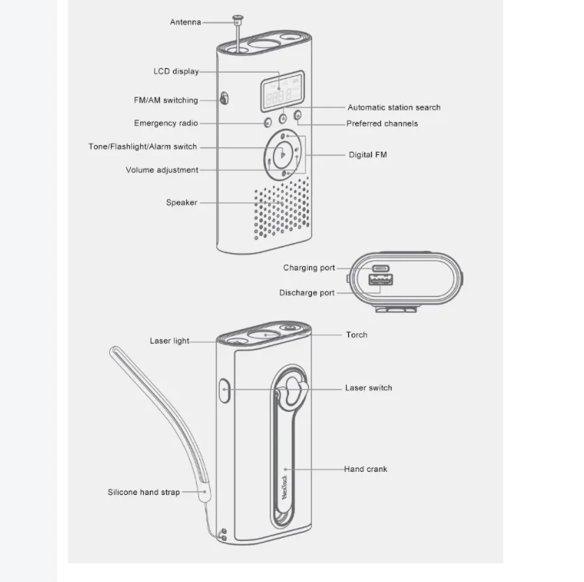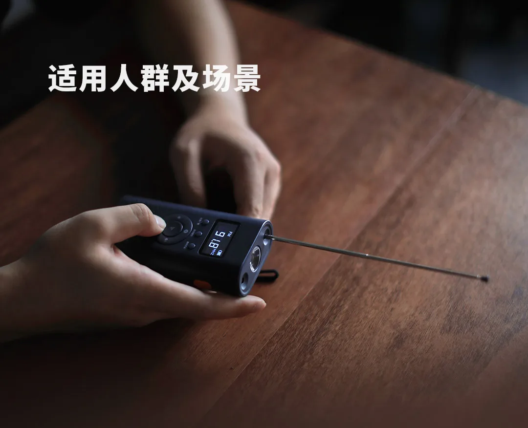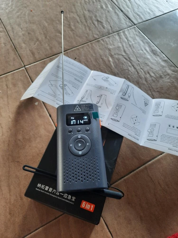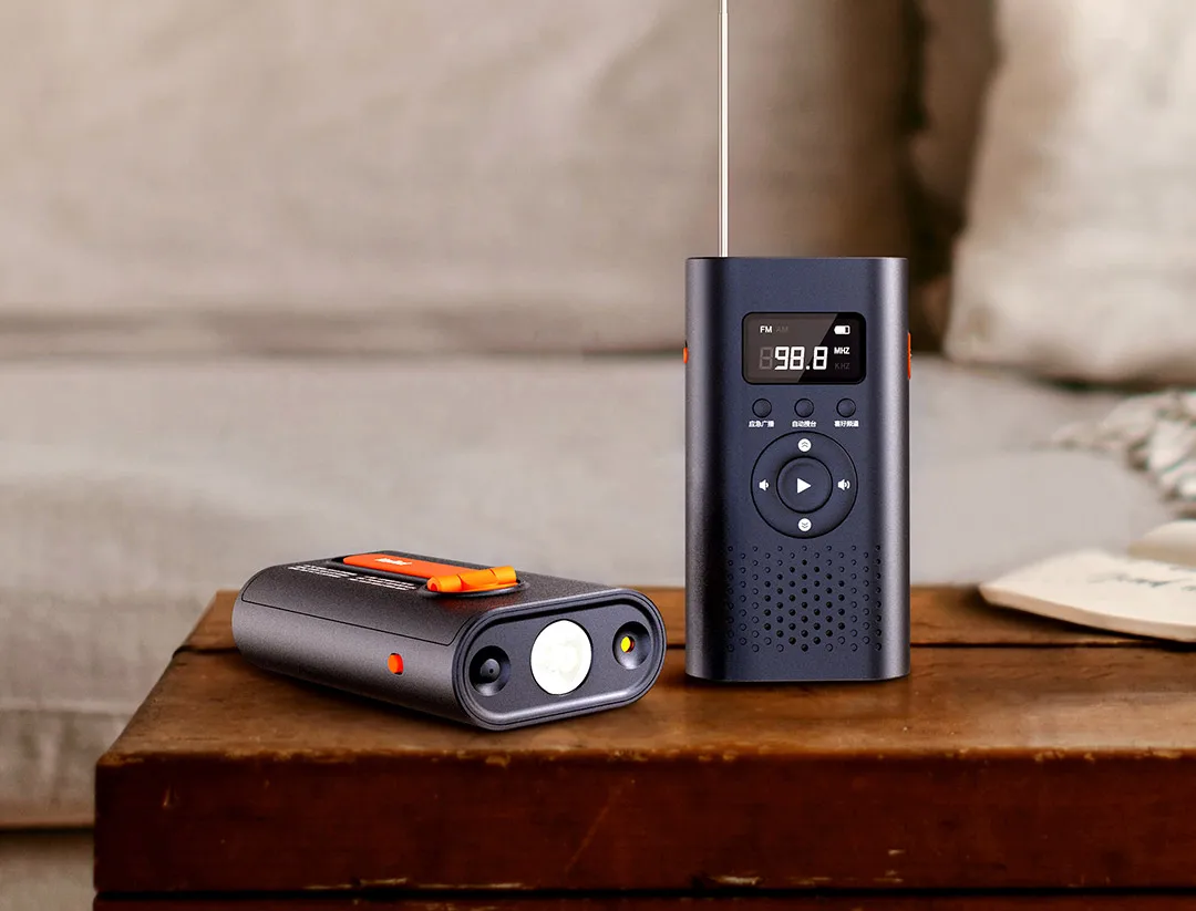 Радио: слегка нажмите на среднюю кнопку, чтобы включить радио, и ЖК-экран загорится. При включении ЖК-экрана снова нажмите среднюю кнопку, чтобы выключить радио. (Если фонарик и радио включены одновременно, сначала нужно выключить фонарик, затем нажмите среднюю кнопку, чтобы выключить радио)