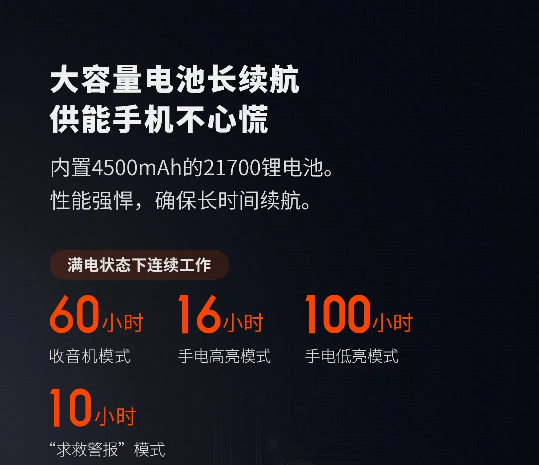 -Срок службы батареи большой емкости, встроенный литиевый аккумулятор 4500 мАч 21700, чтобы обеспечить долгий срок службы.