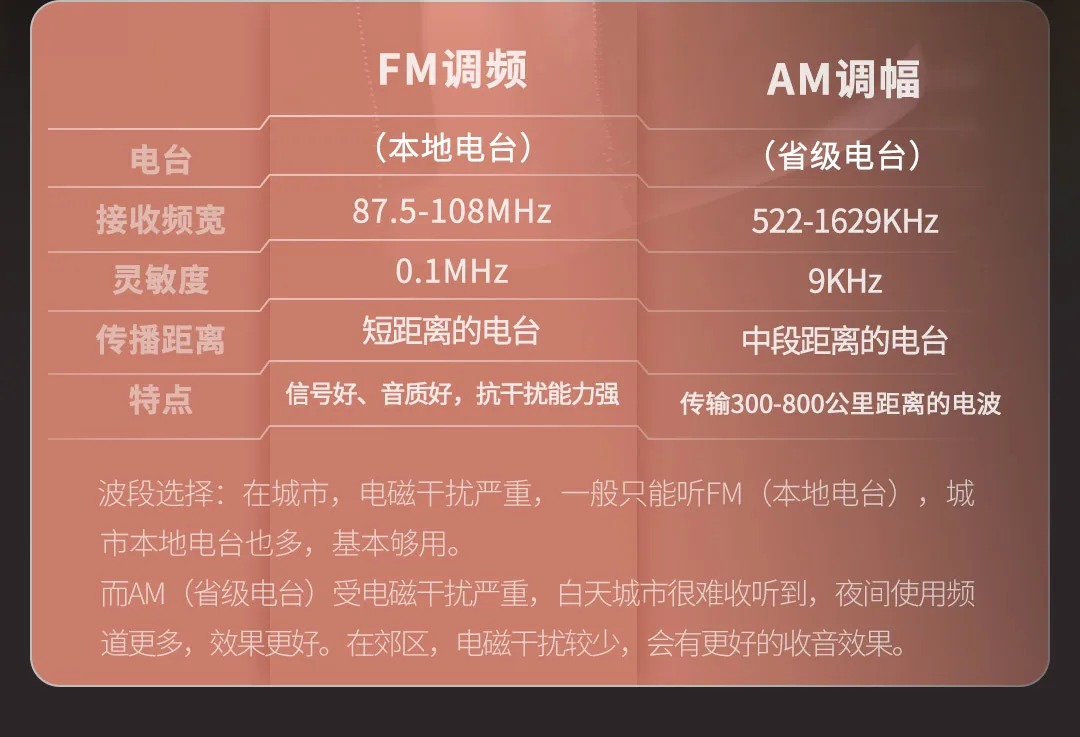 Выбор Waveband: в городах, где электромагнитные помехи сильны, вы обычно можете слушать только FM (местное радио), и есть много местных радиостанций в городе, что в основном достаточно.