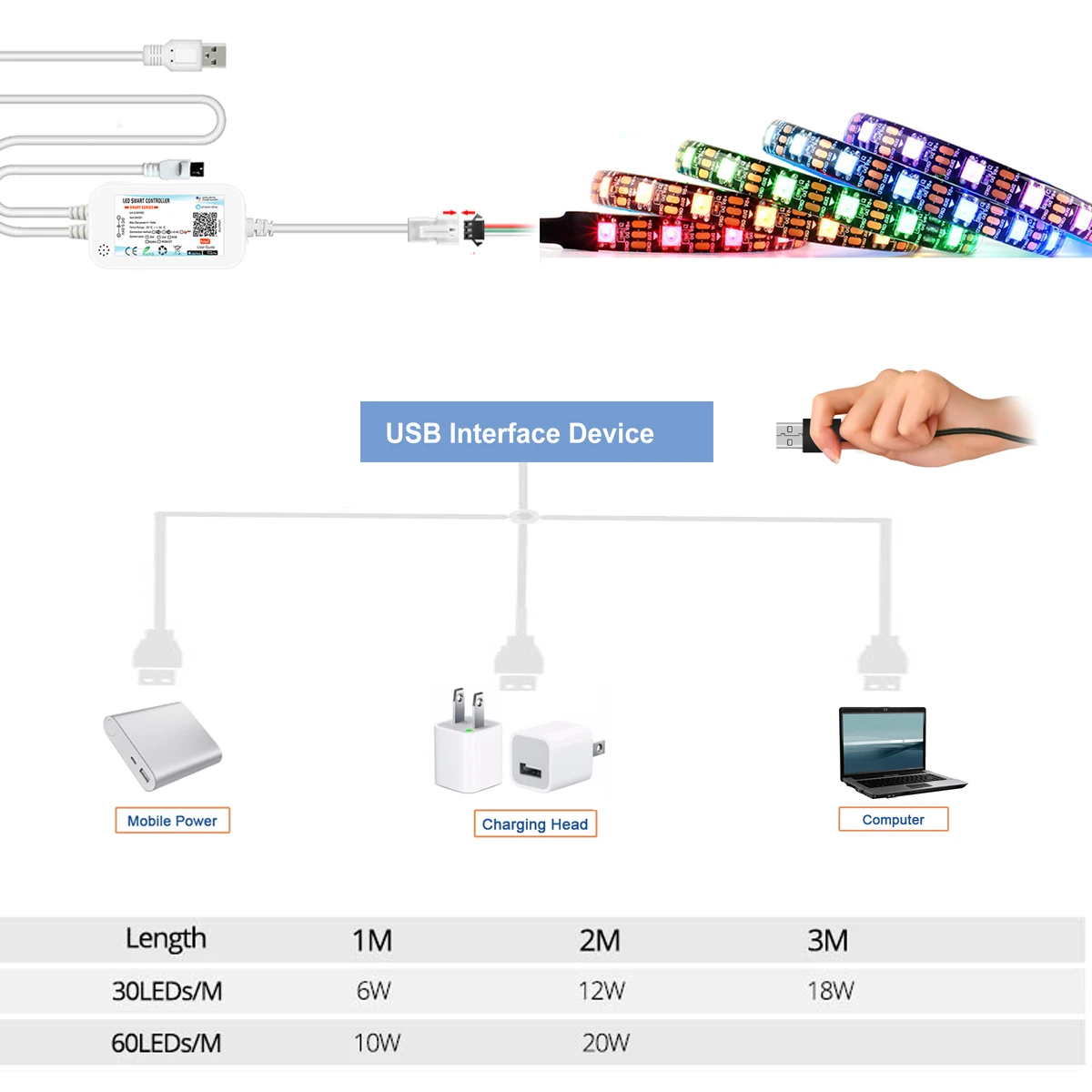 Смарт-Пиксельная Светодиодная лента с пультом ДУ и поддержкой Wi-Fi, 5 В