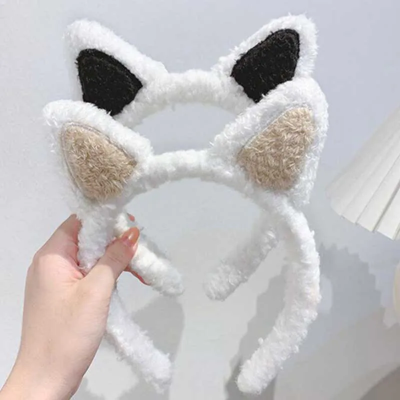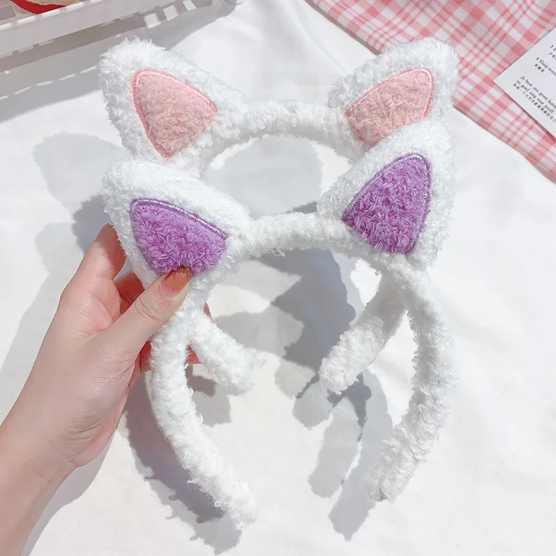 Повязка на голову плюшевая женская, милый головной убор с кошачьими ушками для мытья лица, макияжа, аксессуар для волос