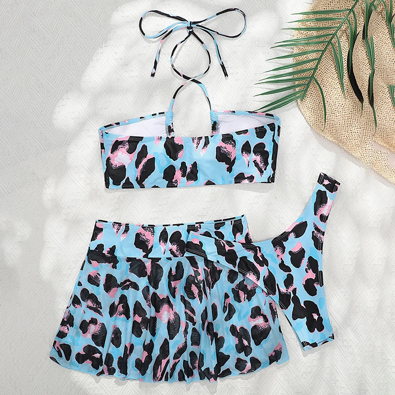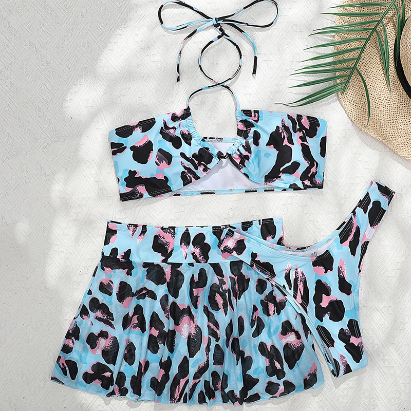 Бикини с леопардовым принтом In-X, купальник из 3 предметов, женские купальные костюмы с юбкой, Купальники, женские костюмы для купания