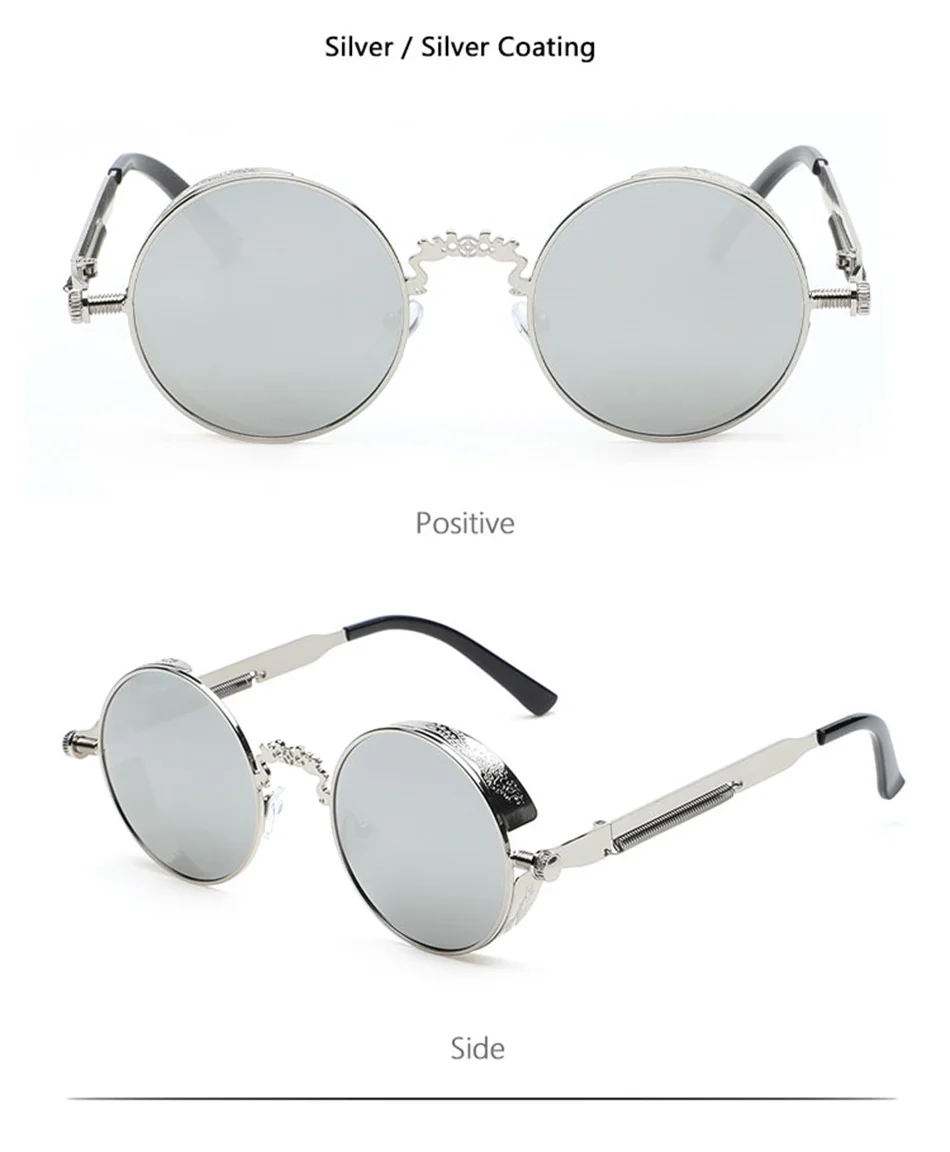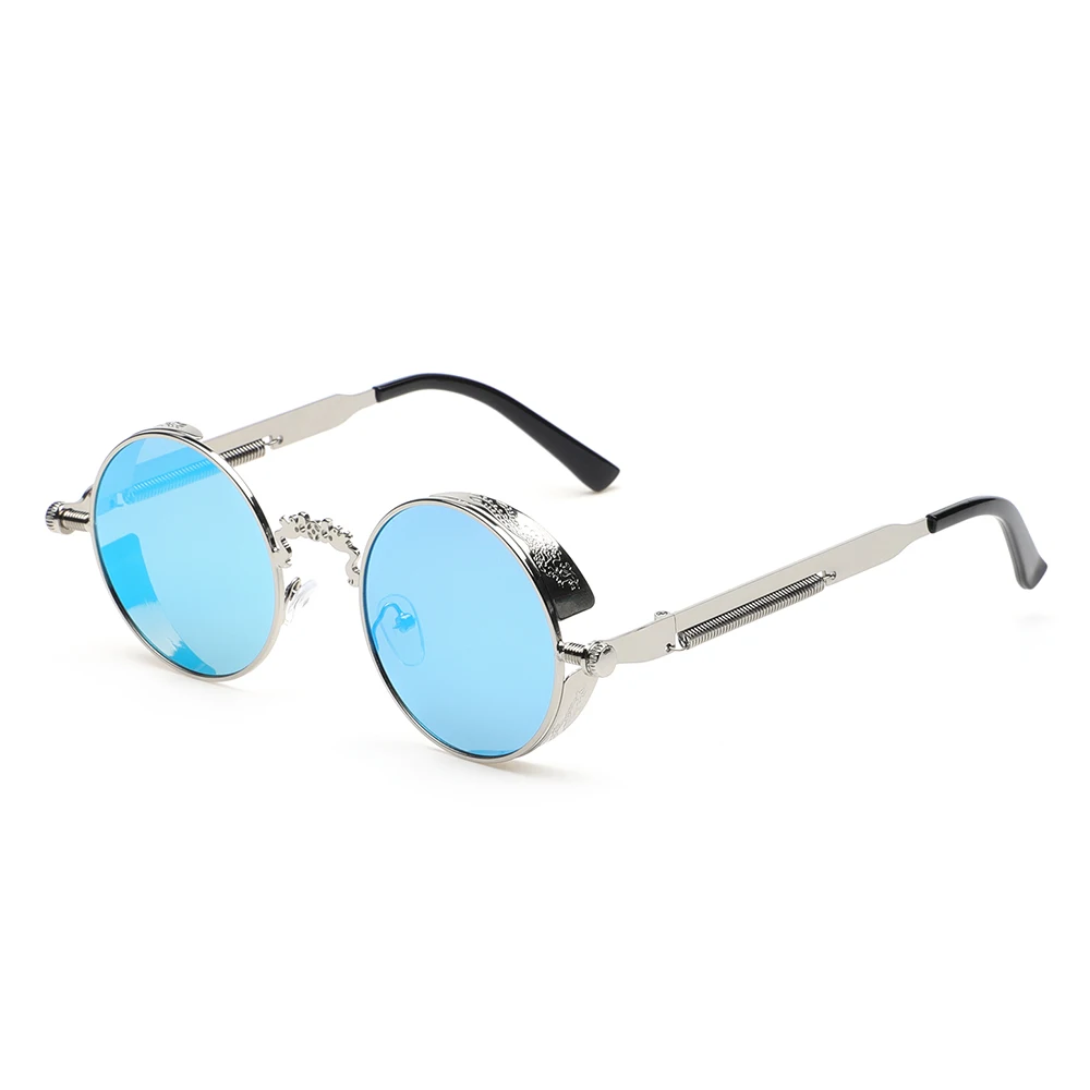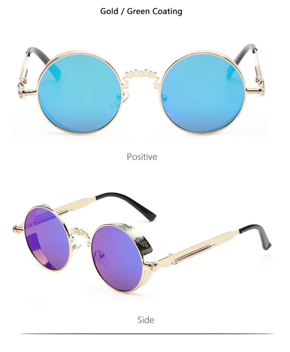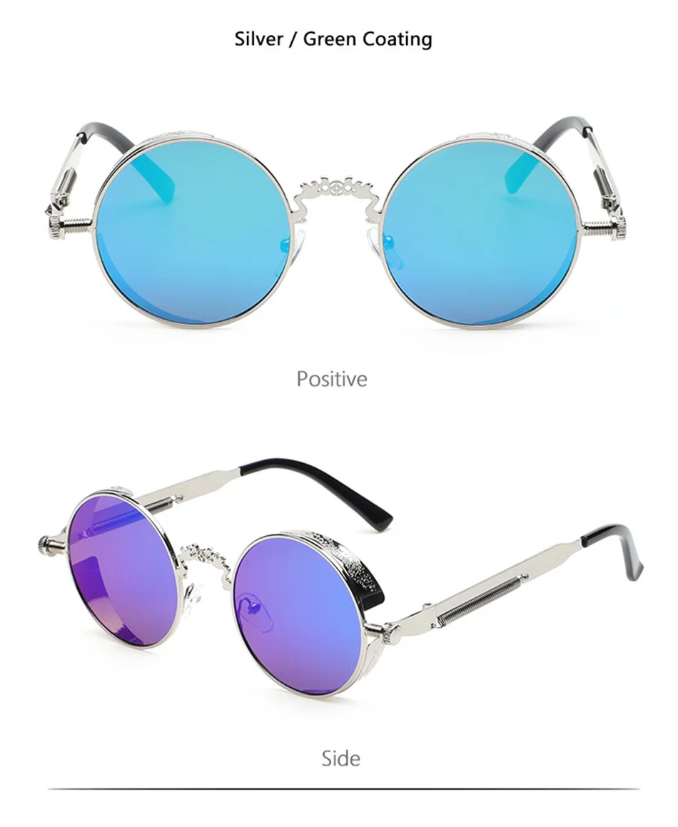 Винтажные модные готические круглые солнцезащитные очки в стиле стимпанк для мужчин и женщин, брендовые дизайнерские очки в стиле ретро с металлической оправой, Цветные Зеркальные Солнцезащитные очки UV400