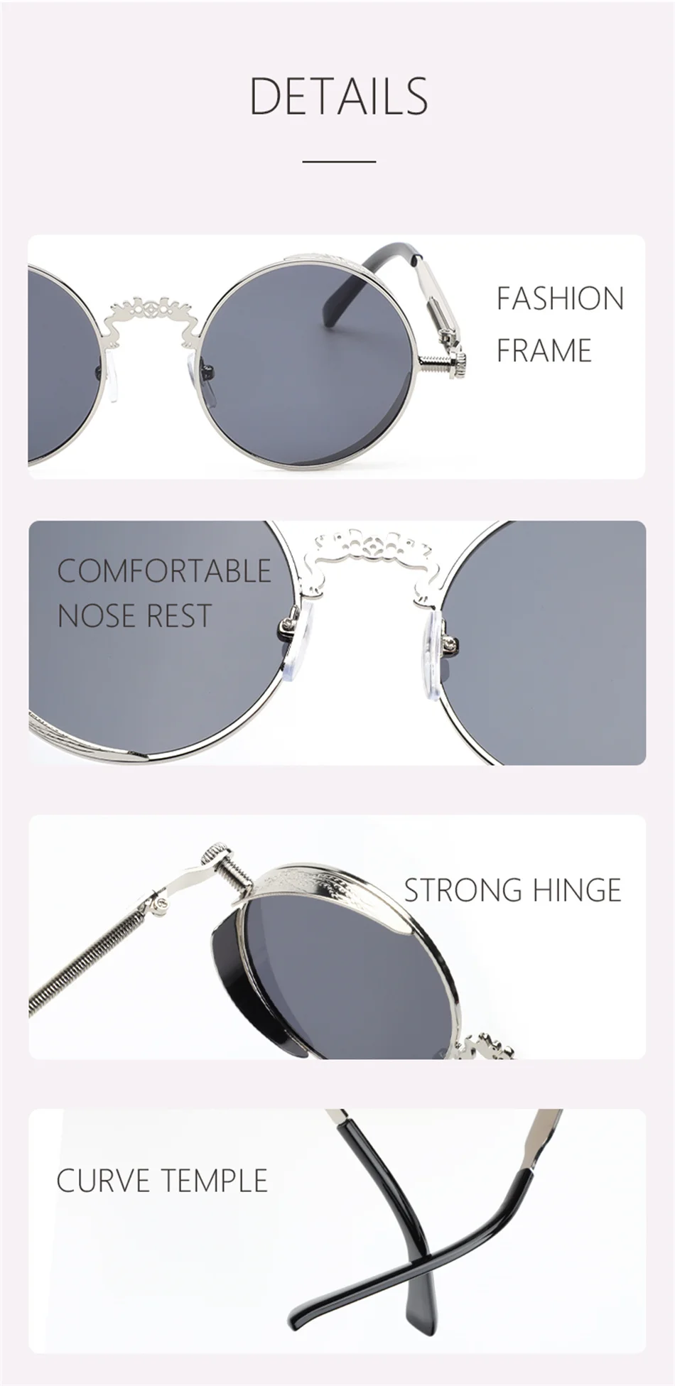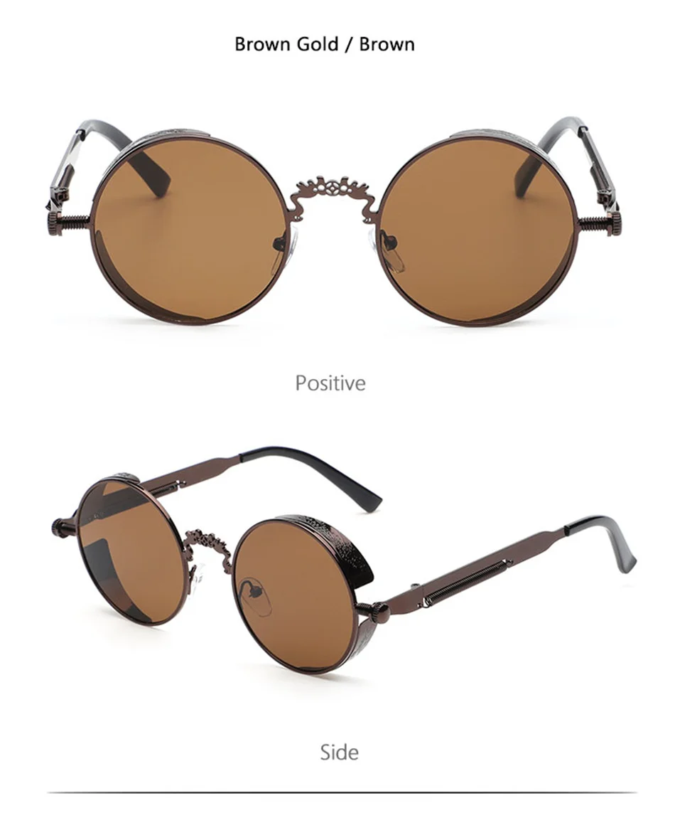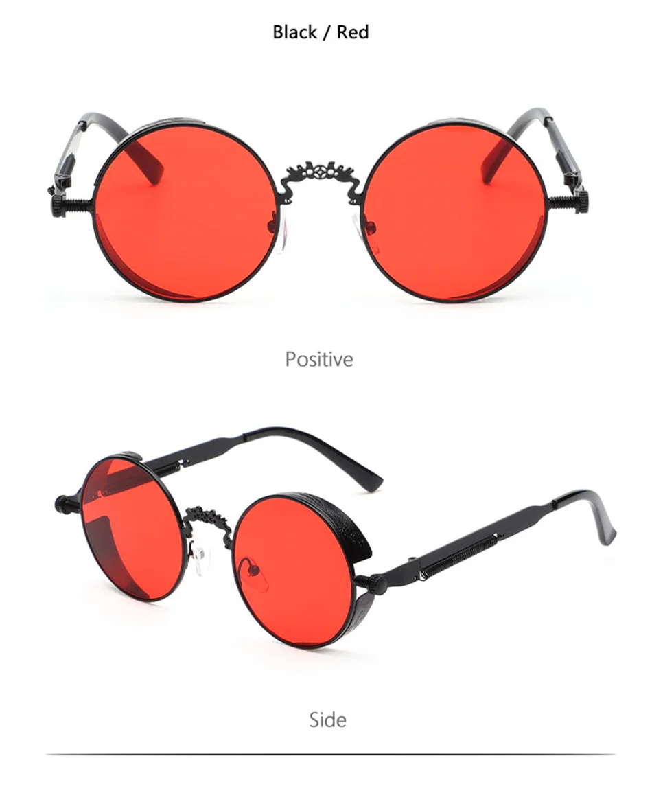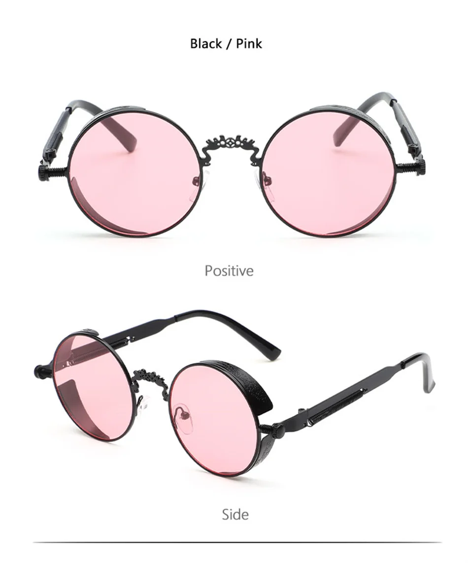 Винтажные модные готические круглые солнцезащитные очки в стиле стимпанк для мужчин и женщин, брендовые дизайнерские очки в стиле ретро с металлической оправой, Цветные Зеркальные Солнцезащитные очки UV400