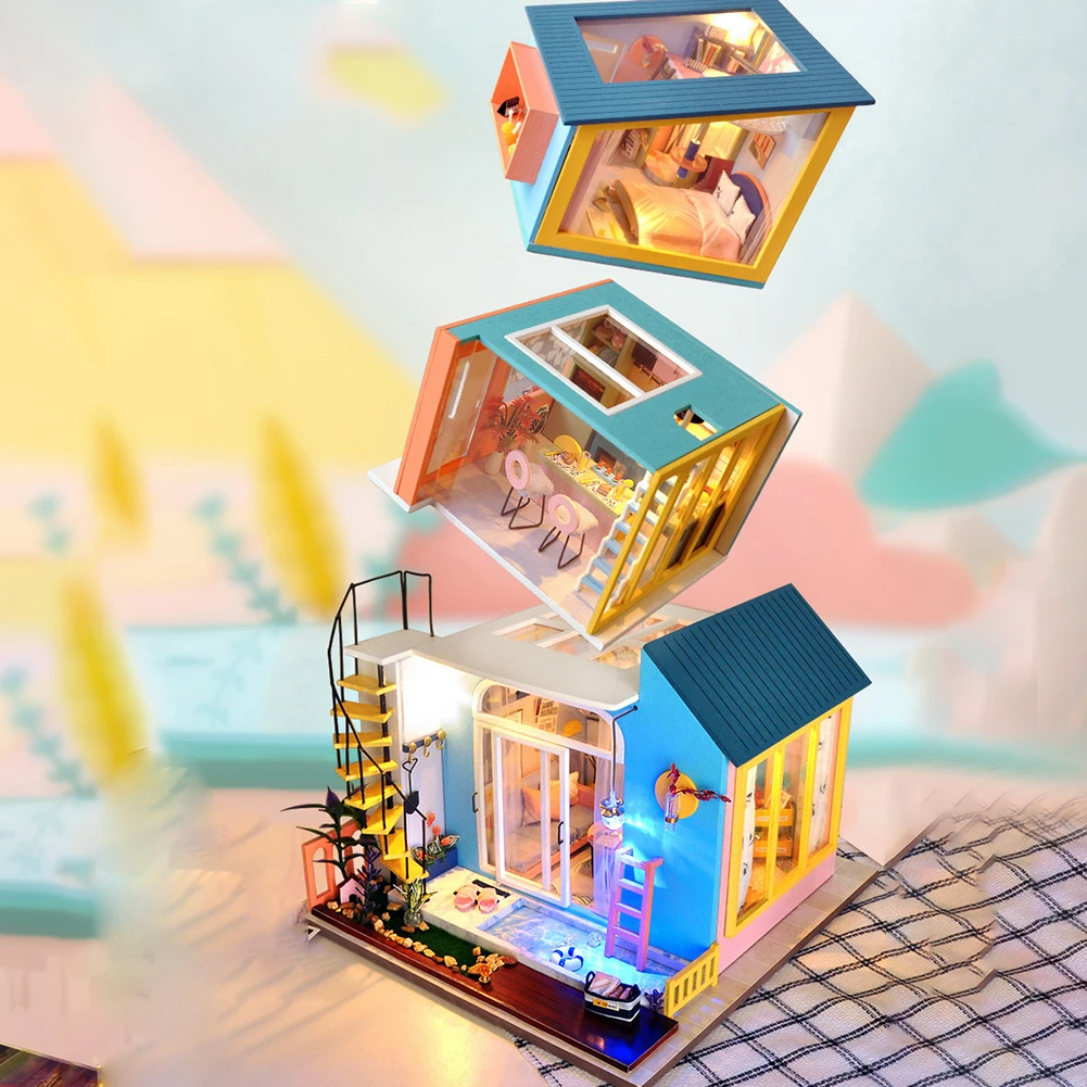 Набор для сборки кукольного домика сделай сам, деревянная комната, игрушка со светодиодом, миниатюрный комплект мебели, подарок для детей и взрослых