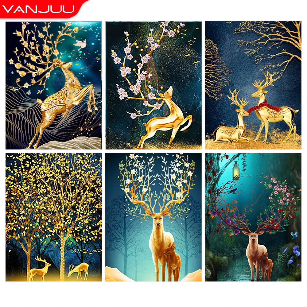 5D алмазная живопись, полная выкладка, мозаика с золотым оленем, до...