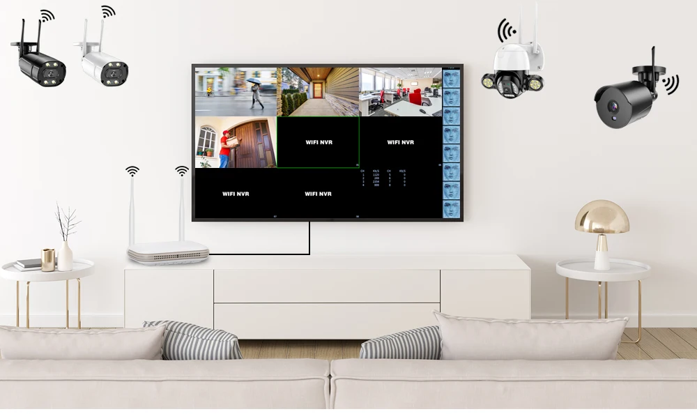 NVRПоддержка 4CH 5MP/8CH 3MP Wifi HD камера, 4K/8MP Проводная HD камера, камера имеет Wifi 3MP и Wifi 5MP опциональноПоказать изображения более высокого качества, с лучшим опытом.