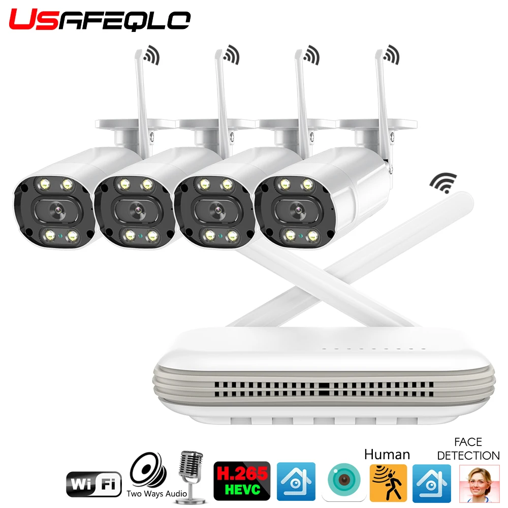 Беспроводная система видеонаблюдения USAFEQLO, H.265 Wi-Fi 8 каналов 3 Мп 4 канала 5 Мп NVR, наружная IP-камера, комплект видеонаблюдения с Wi-Fi