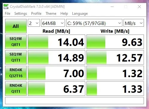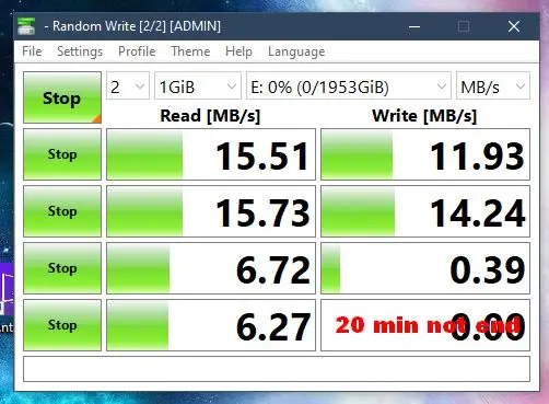 Скоростта е бавна за за м2 диск. 15-20 мб