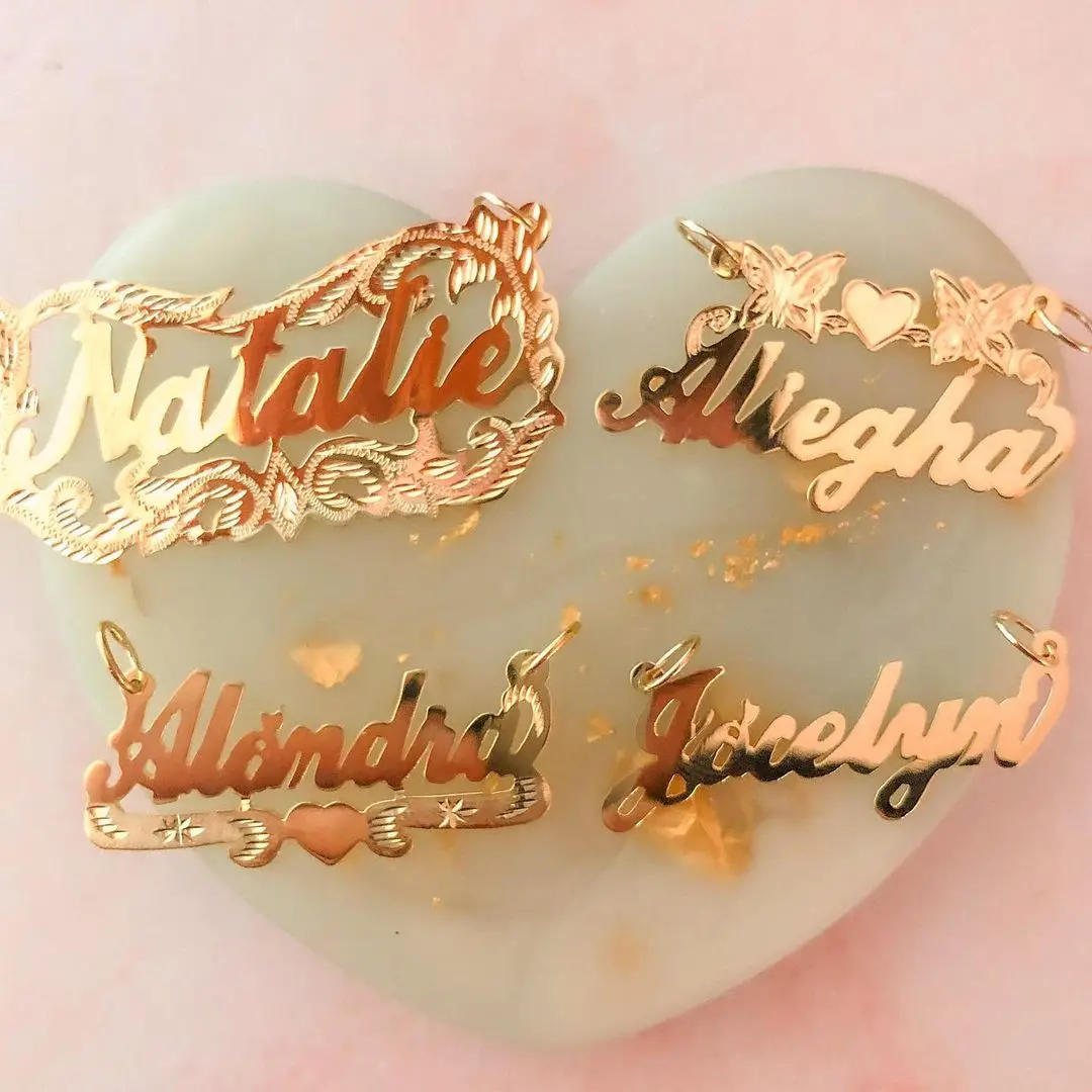 18K продано Золотые желтые курсивные бабочки и сердце под заказ стандартное женское ожерелье для рождественского подарка