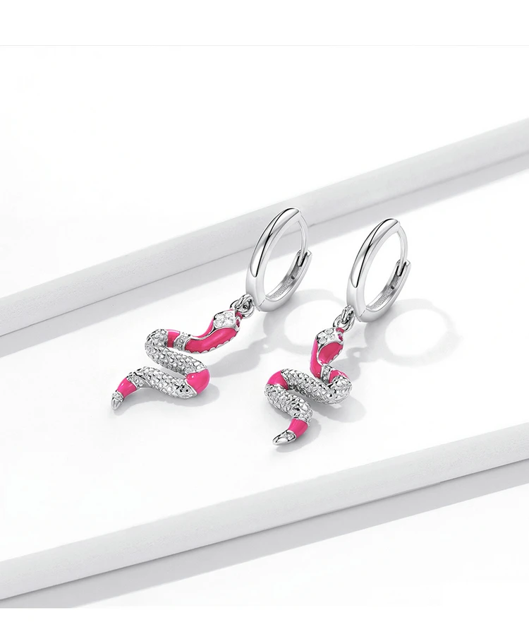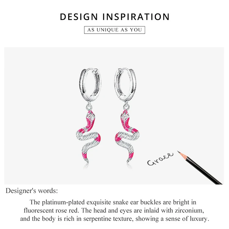 ❤[Описание] изысканные пряжки с платиновым покрытием в виде змеи ярко-розово-Красного цвета. Голова и глаза инкрустированы цирконием, а тело богато серпантиновой текстурой, показывающей ощущение роскоши.❤[Спецификация] Размер: 3,2*0,9 см.❤[Материал] Стерлинговое Серебро 925 пробы и паве с фианитами и эмалью, покрытые платиной, эти серьги не имеют никеля, не имеют свинца, не имеют кадмия, гипоаллергенны. Гарантия качества, приятный для кожи, удобный и удобный в носке, не вредный для вашего здоровья.❤[Для подарка] 1 пара сережек и 1 шт. Изысканная Подарочная коробка, которая является идеальным подарком для мамы, дочки, правки, тети, сестер, друзей.