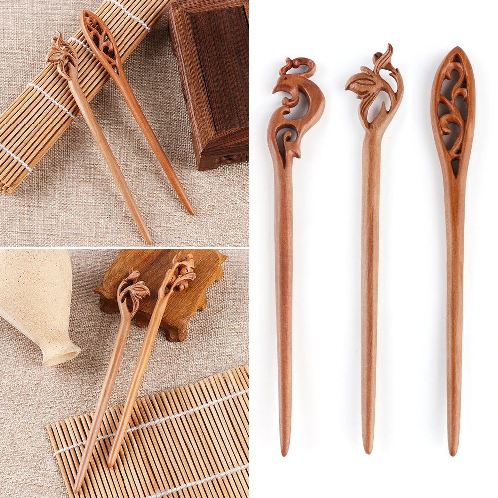 1 шт. китайская Ретро персиковая деревянная резная шпилька для волос женская модная ручная заколка для волос с вырезами шпилька для волос аксессуары для укладки волос