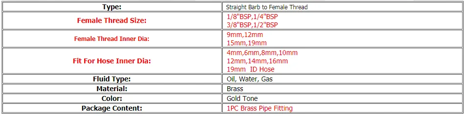 Латунный штуцер для шланга 6 мм, 8 мм, 10 мм, 12 мм, 19 мм, Хвостовик с зазубринами 18 дюйма, BSP, внутренняя резьба, медный соединитель, Соединительный адаптер