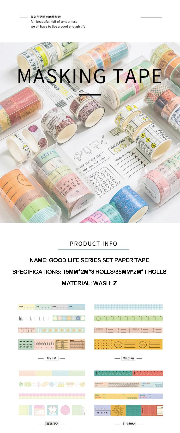 4 шт.лот декоративная Маскировочная лента Washi серии Good life, на...