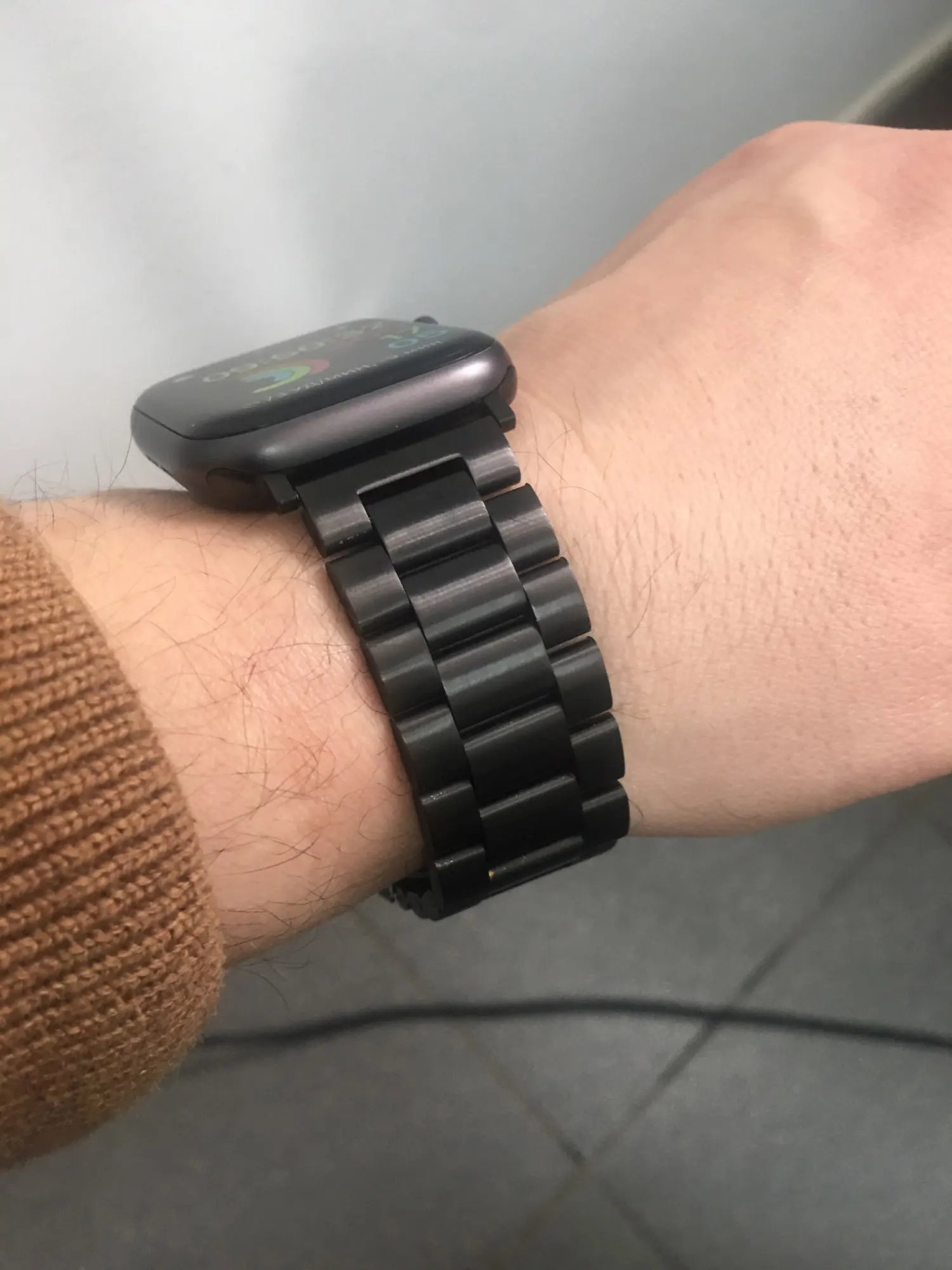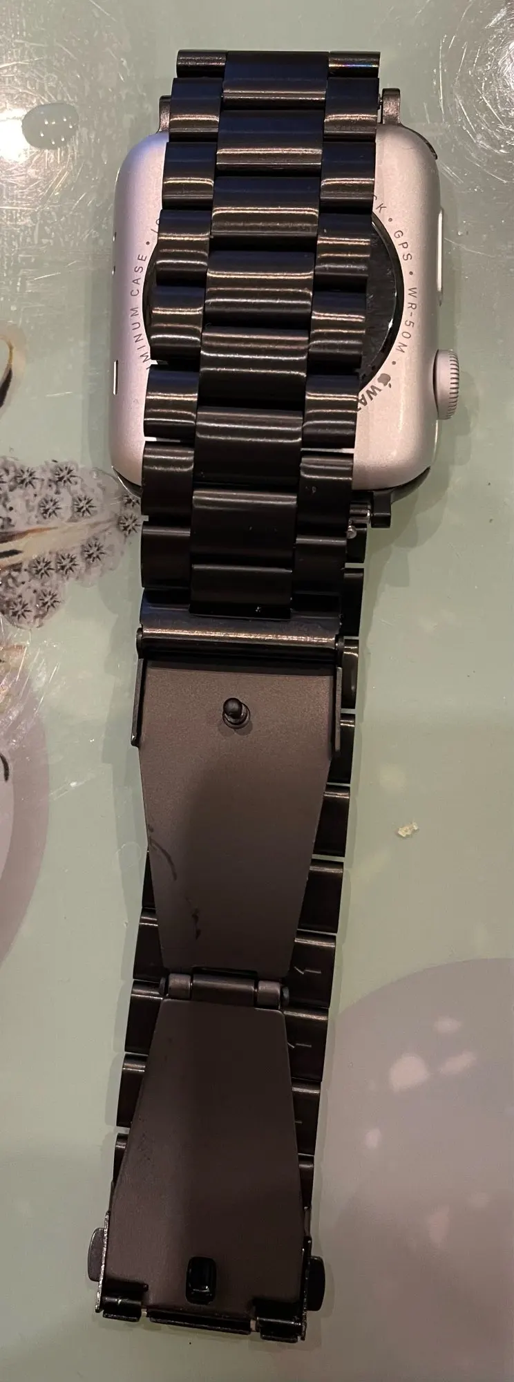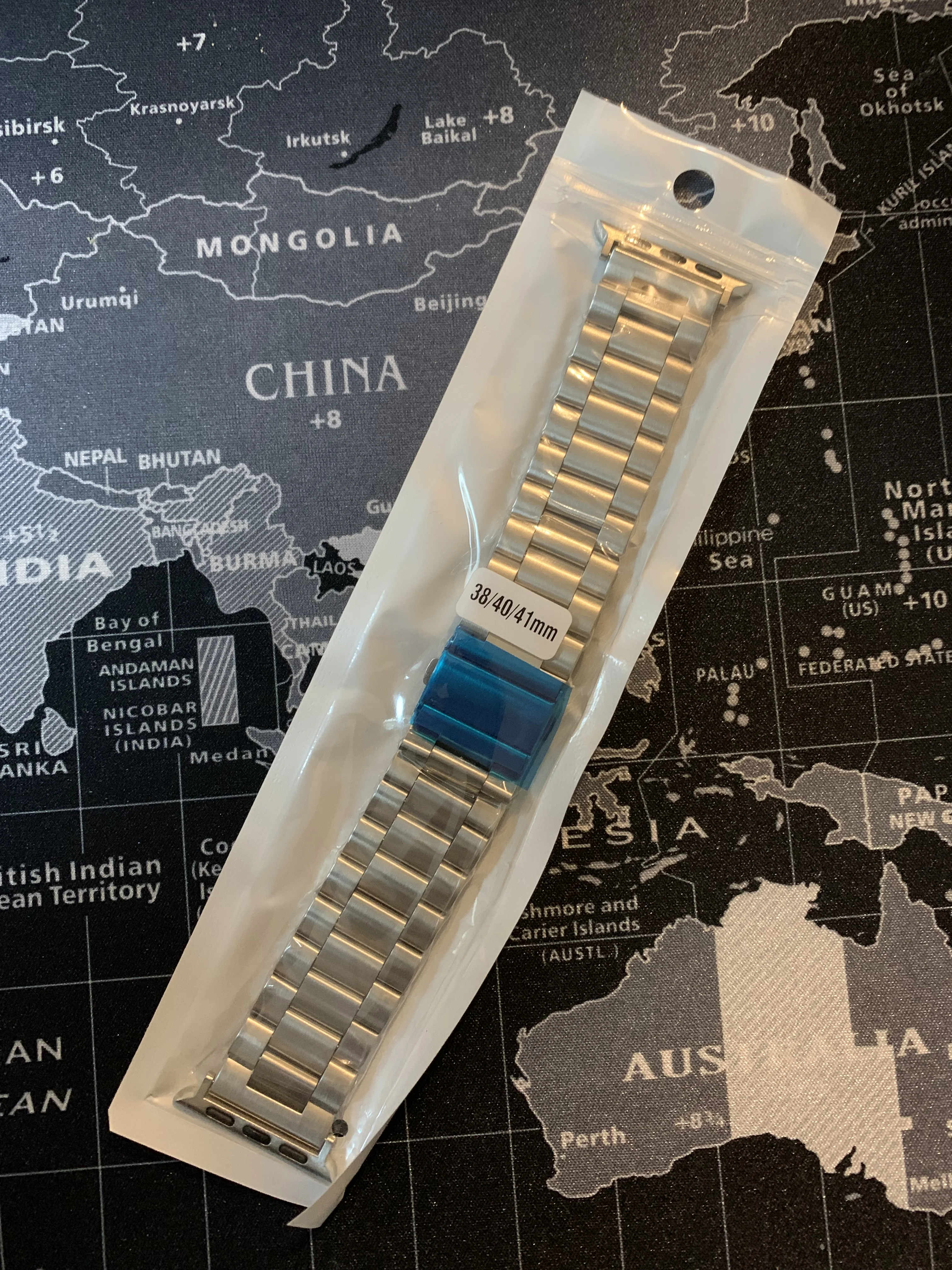 Довольно дешевый металлический ремешок, размер подогнал довольно точно, в целом хорошо, можно купить несколько. Думаю краска сотрется быстро с него.