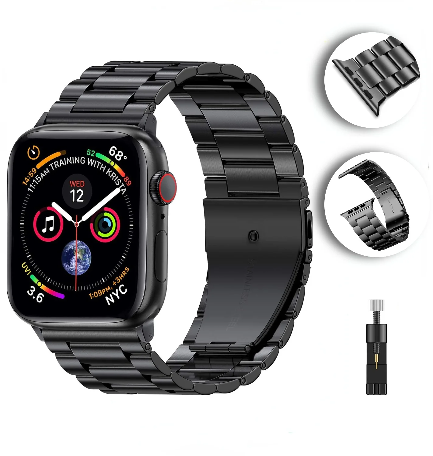 Отлично подходит для Apple Watch, если 44 мм. Необходимо заказать подходящий инструмент для демонтажа трикотажных изделий.