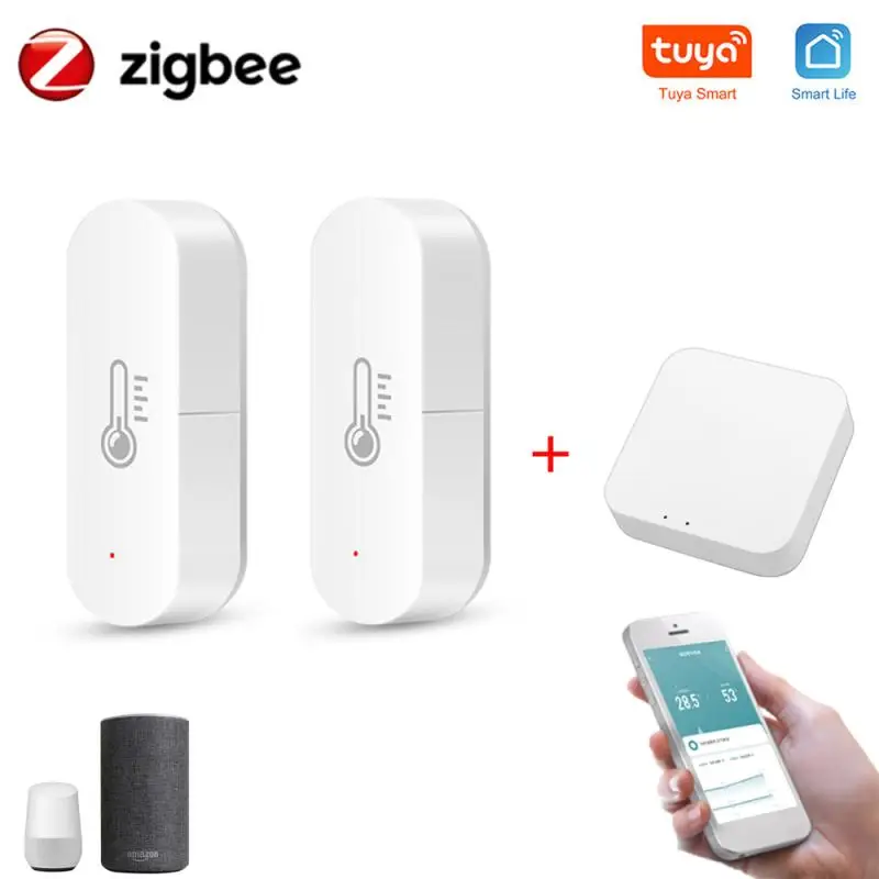 Смарт-датчик температуры и влажности TuyaSmartLife App ZigBee, работает от аккумулятора с концентратором Zigbee, работает с Alexa Google Home
