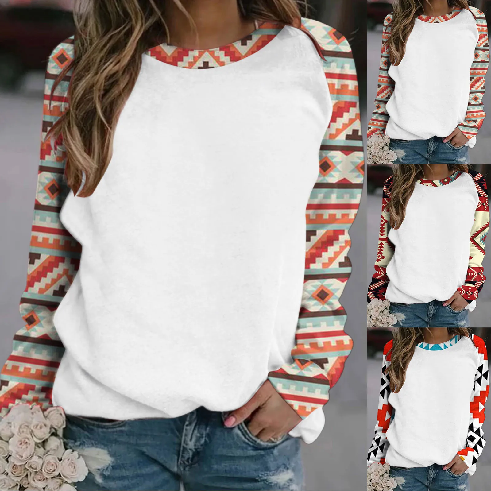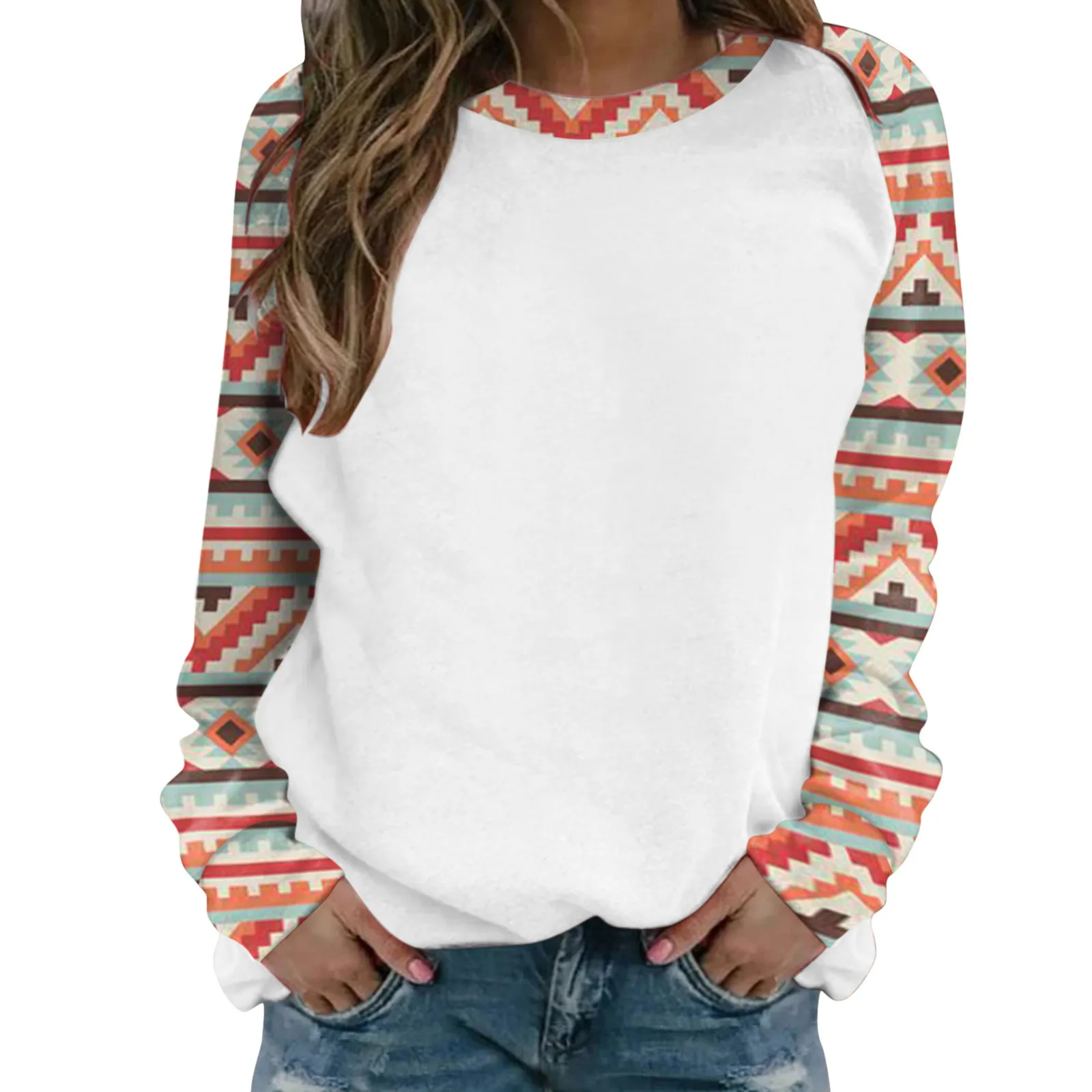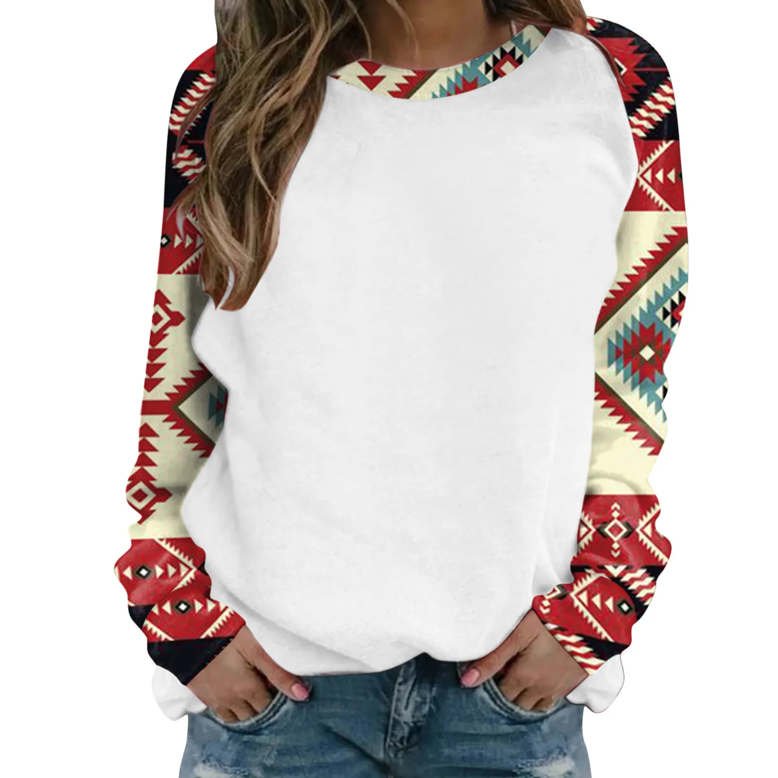 Женская толстовка с длинными рукавами; Западный ацтекский топ с принтом; Свитер с круглым вырезом; Пуловер