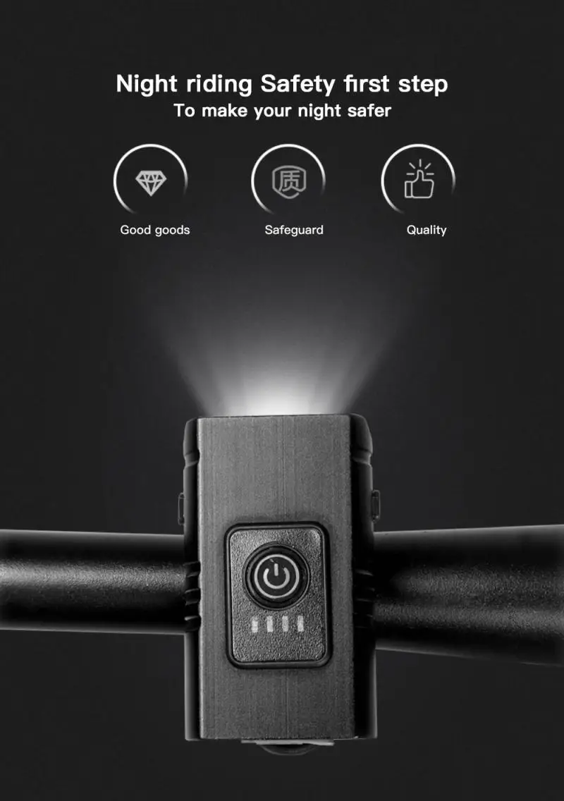 Передняя фара для горного и дорожного велосипеда, 1000 лм, 6 режимов, зарядка через USB
