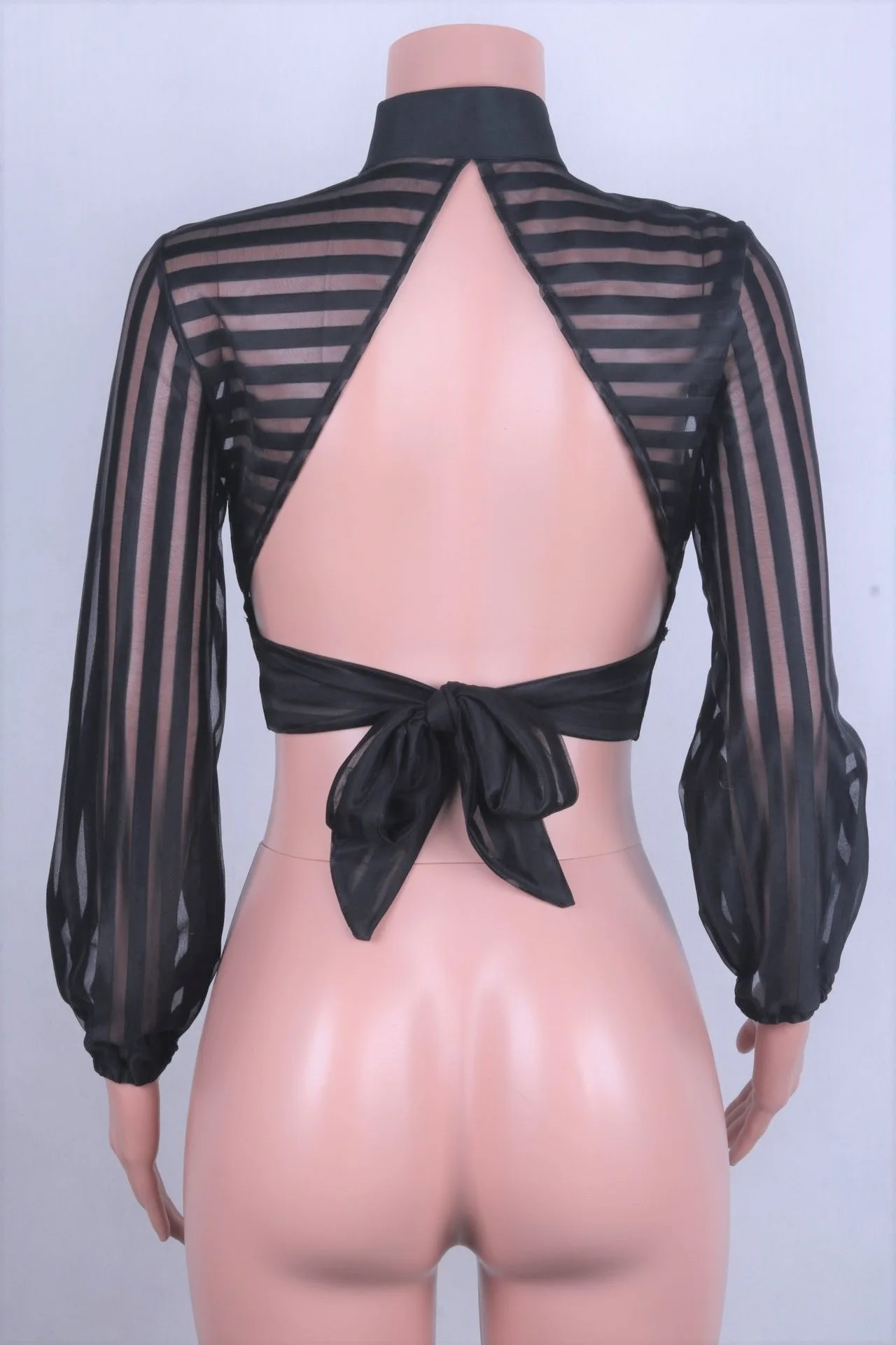 Женская прозрачная блузка с длинным рукавом и открытой спиной, в че...