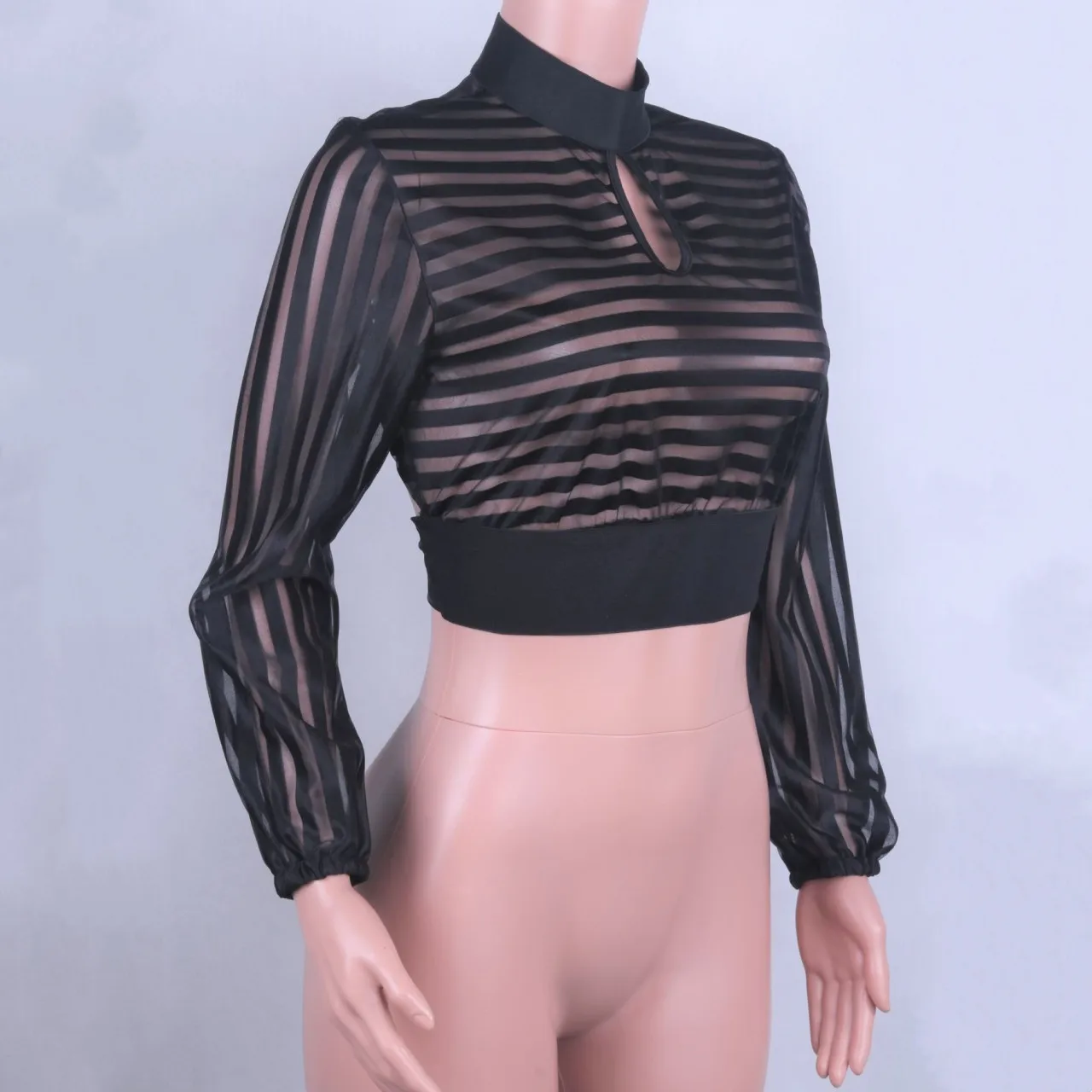 Сексуальные женские черные полосатые сетчатые Прозрачные рубашки с ...