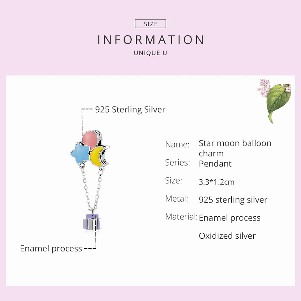 ❤[Опишите] воздушный шар с голубыми звездами, шар с желтой Луной и красный круглый шар плавают в воздухе. Ниже представлена изысканная и уникальная Подарочная коробка с фиолетовым бантом. ❤[Материал] 925 пробы серебра и окисленного серебра, этот серебряный шарм не содержит никель, не содержит свинец, не содержит кадмия, гипоаллергенен. Гарантия качества, приятный для кожи, удобный и удобный в носке, не вредный для здоровья. ❤[Мастерство]:S925 + эмалированный процесс + окисленное серебро ❤[Параметры]: Размеры: 3,3*1,2 см, диафрагма: 0,45 см ❤[В подарок] 1 шт 925 серебряный шарм и Подарочный мешочек, который является идеальным подарком.
