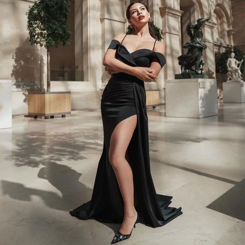 Женское вечернее платье с открытыми плечами, на шнуровке, с разрезом и открытой спиной