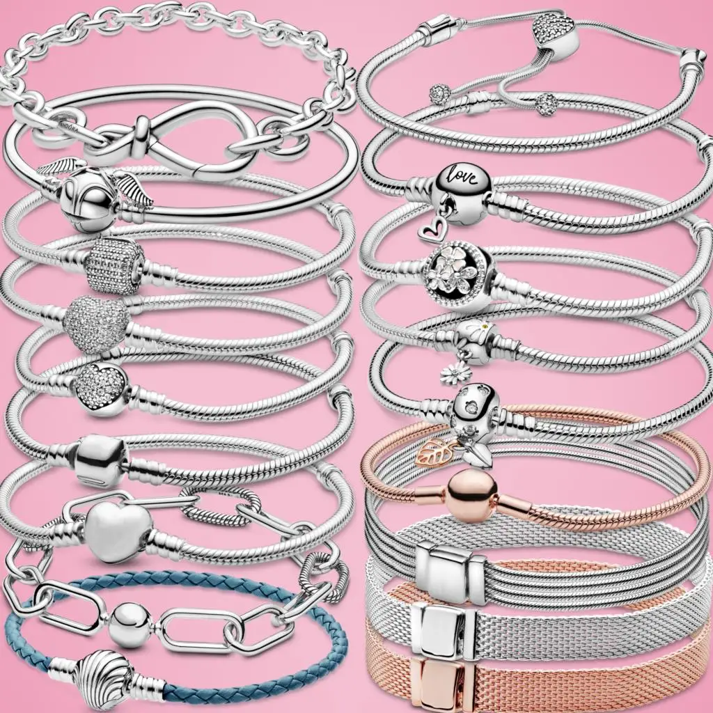 Лидер продаж 2021, Посеребренная Цепочка-талисман в виде змеи, Подходит для pandora, оригинальные бусины, браслет на запястье, самодельные Украшения для женщин и девочек