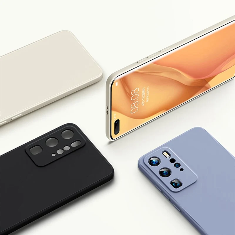 Квадратный защитный чехол из жидкого силикона для Huawei P40 P30 Li...